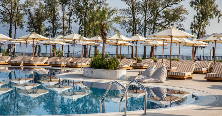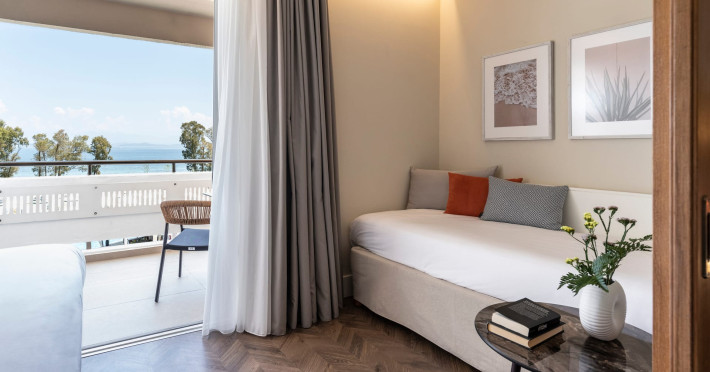 Α 5-star metamorphosis in Corfu!The classy new concept flawlessly merges the old and the new, a perfect amalgamation of Corfu’s Italian and French influences; an exciting mix embracing the love of the good life, ‘La Dolce Vita’, and inspired by the timeless romance of ‘La Vie en Rose’.Deliberate and elegant in design, this sophisticated 5-star hotel features 240 rooms and suites that offer couples and families the epitome of high living and comfort.The four restaurants within the expansive grounds of Kerkyra Blue Hotel N’ Spa are tailored to all tastes, inviting guests to indulge in a premium all-inclusive journey throughout the day. From Japanese fusion cuisine to the finest traditional Greek flavours and the tantalising aromas of Italy, every elevated culinary offering has been carefully crafted to take diners on a satiating journey around the world. Two bars within the hotel grounds further enhance the gastronomic offering, providing the perfect spot for a refreshing drink in relaxed Mediterranean style.