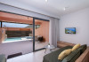 Camera de familie, Superior, vedere la mare: dormitor si living separate prin usi glisante