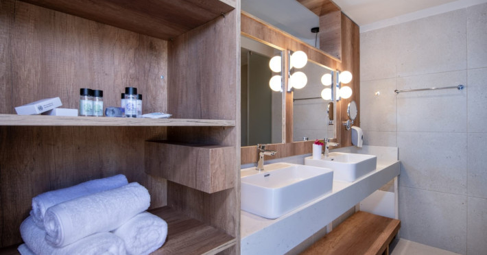 Camera dubla, superioara: aer conditionat cu control individual, baie/WC (uscator de par), seif (gratuit), frigider, TV/sat., facilitati pentru prepararea de ceai si cafea, telefon, balcon sau terasa.
