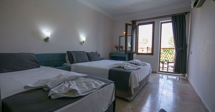 Hotel characteristics: ; 29 rooms Location: «Kilim Apart Hotel» is located in Fethiye. This apartment hotel is located in walking distance from the city center At the apartament hotel: Spend an evening in a nice atmosphere of the bar. Taste the local cuisine and have a rest in the restaurant. Free Wi-Fi is available on the territory. Ask for more information when checking in. Specially for tourists who travel by car, thereâs a free parking zone; If you travel by car, thereâs a parking zone. Guests who love doing sports will be able to enjoy a table tennis area, a yoga area and a diving club. You will find these entertainment amenities on the premises: a library, a ping-pong area and a barbeque area. Here, you can treat yourself with water procedures as there will be a pool, an indoor pool and an outdoor pool; To book an excursion, consult the tour assistance desk of the apartment hotel. For the free movement around the city, the apartament hotel offers a transfer for you. There are other services available for the guests of the apartment hotel. For example, a laundry, car rental and a safe-deposit box. The staff of the apartment hotel will be happy to talk to you in English Room amenities: Guests will find the following in the room: a shower, a TV, a mini-bar and slippers. The room equipment depends on its category