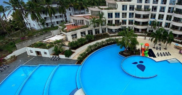 Kilua Residences by CityBlue offers modern apartment accommodations with direct access to the beach on the Mombasa North Coast. Guests can enjoy panoramic coastal views and relax by the outdoor pool, hot tub, or sauna. The aparthotel features a full-service spa, complimentary wireless internet access, concierge services, a snack bar/deli, and a banquet hall. Continental breakfast is available daily for a fee. Amenities include dry cleaning/laundry services, a 24-hour front desk, and multilingual staff. The property offers conference space and meeting rooms, along with free self-parking. The air-conditioned guestrooms feature kitchens with refrigerators and stovetops, flat-screen televisions with satellite programming, safes, and desks. Housekeeping is provided daily. Kilua Residences is within a 15-minute drive of Bamburi Beach and Mtwapa Mall, and is also near Haller Park. The Kilua Beach Resort is a hotel.
