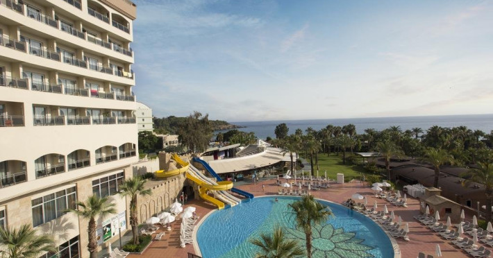 Facilitati hotel: Hotelul ofera oaspetilor sai urmatoarele facilitati: 3 restaurante a la carte (mediteranean, asiatic, turcesc), 8 baruri, piscina exterioara, 3 tobogane, piscina pentru copii, piscina interioara, programe de animatie, spectacole in amfiteatru, petreceri pe plaja si la piscina, muzica live, discoteca, aerobic, zumba, darts, tenis de masa, teren de tenis si echipament, volei pe plaja, basket, mini fotbal, sauna, hammam, mini club (4-12 ani), maxi club (13-18 ani), mini disco, loc de joaca. Servicii cu plata: bauturile servite dupa ora 02:00, seif, servicii medicale, baby sitter, servicii de curatatorie, sporturi acvatice, nocturna pentru terenul de tenis, sala de jocuri, bowling, biliard, internet cafe, play station, internet peste limita de 128 KB, room service, masaj si alte tratamente in centrul SPA.