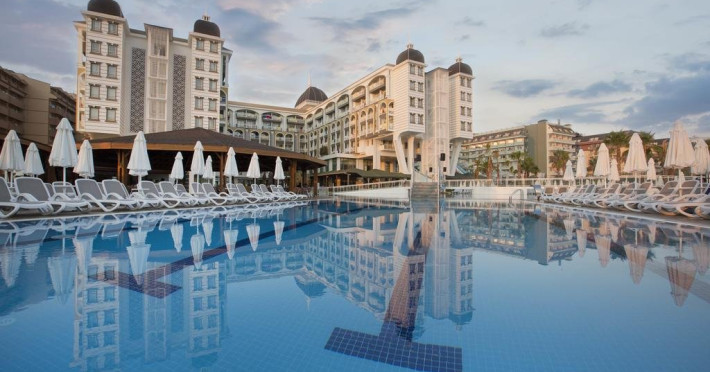 Facilitati hotel: Hotelul ofera oaspetilor sai urmatoarele facilitati: 3 restaurante a la carte (Mediteranean, Asiatic, Kebab), seri tematice in restaurantul principal, 6 baruri, gozleme, piscina exterioara, 3 tobogane, piscina pentru copii, piscina interioara, sauna, baie turceasca, programe de animatie, centru fitness, aerobic, zumba, gimnastica in apa, polo, darts, tenis de masa, teren de tenis, volei pe plaja, basket, mini fotbal, mini club (4-12 ani), maxi club (13-18 ani), mini disco, bufet pentru copii in restaurantul principal, diverse activitati pentru copii. Servicii cu plata: bauturile servite dupa ora 24, bauturile servite in disco bar, seif, baby sitter, servicii de curatatorie, servicii medicale, sporturi acvatice, nocturna pentru terenul de tenis, narghilea, biliard, internet cafe, play station, room service, masaj si alte tratamente de intretinere.