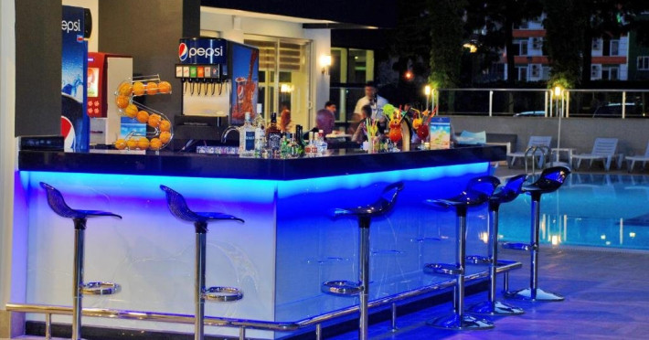 FACILITATI HOTEL Localizat in centrul statiunii Alanya, Hotelul Kleopatra Ramira ofera servicii de patru stele in regim all inclusive si pune la dispozitia oaspetilor facilitati precum transfer gratuit catre plaja, umbrele si saltele gratuite pe plaja, piscina cu tobogan pentru copii, un centru SPA si Wellness cu baie turceasca, sauna si sala de fitness.