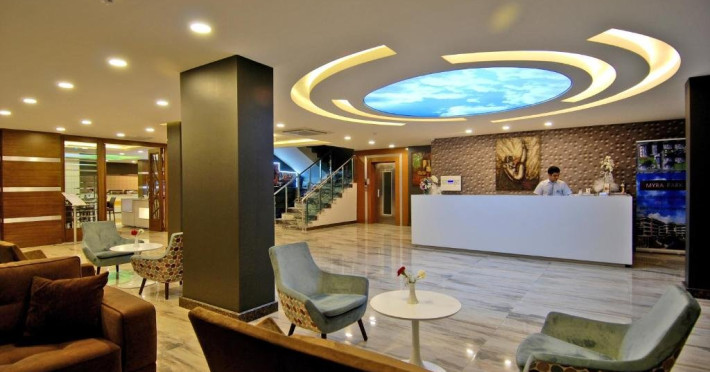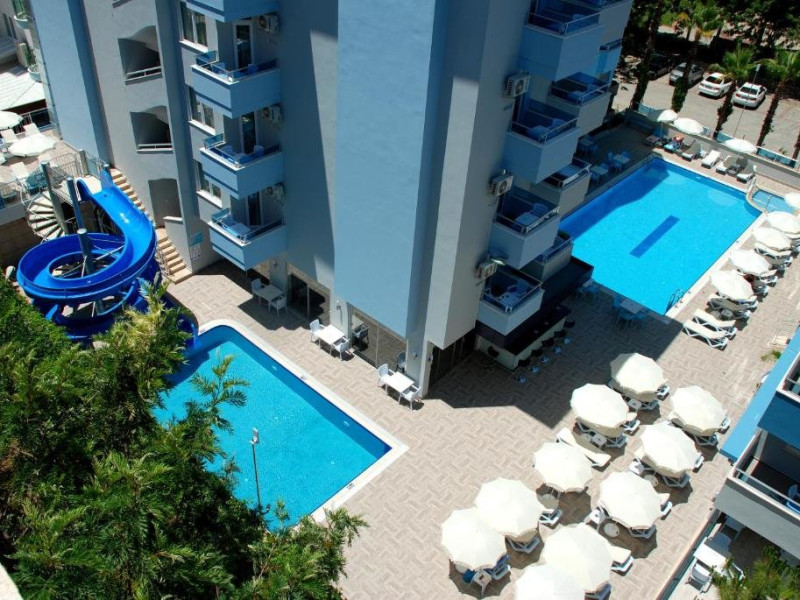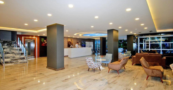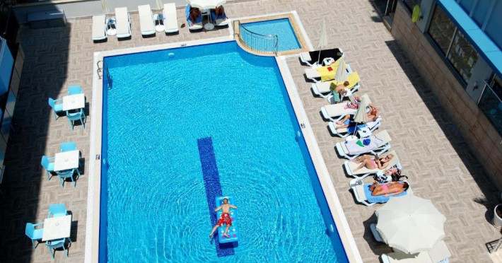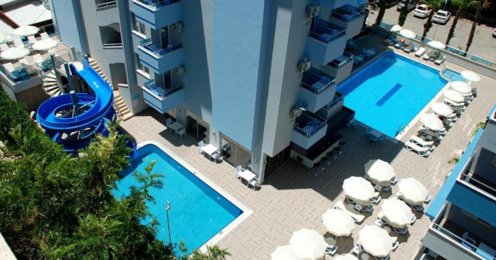 DESCRIERE Localizat in centrul statiunii Alanya, Hotelul Kleopatra Ramira ofera servicii de patru stele in regim all inclusive si pune la dispozitia oaspetilor facilitati precum transfer gratuit catre plaja, umbrele si saltele gratuite pe plaja, piscina cu tobogan pentru copii, un centru SPA si Wellness cu baie turceasca, sauna si sala de fitness.