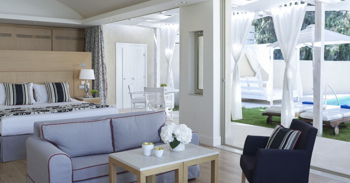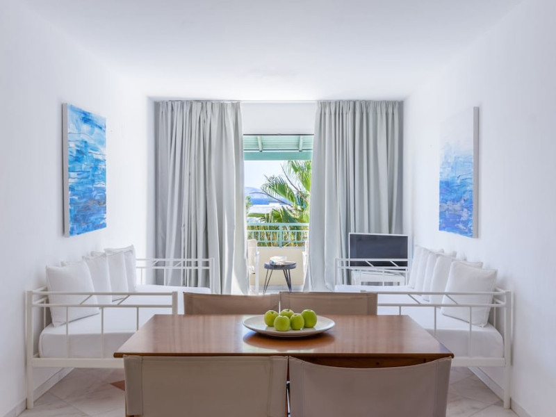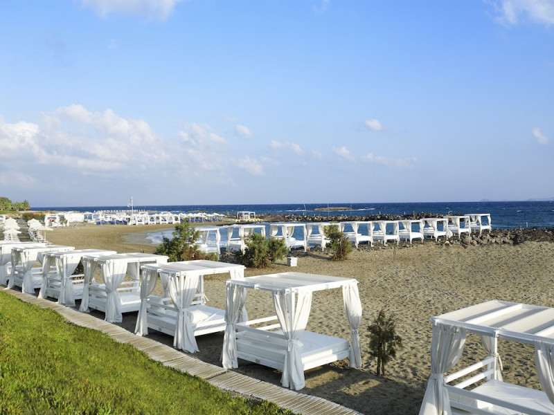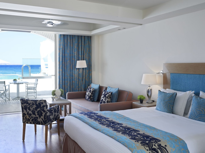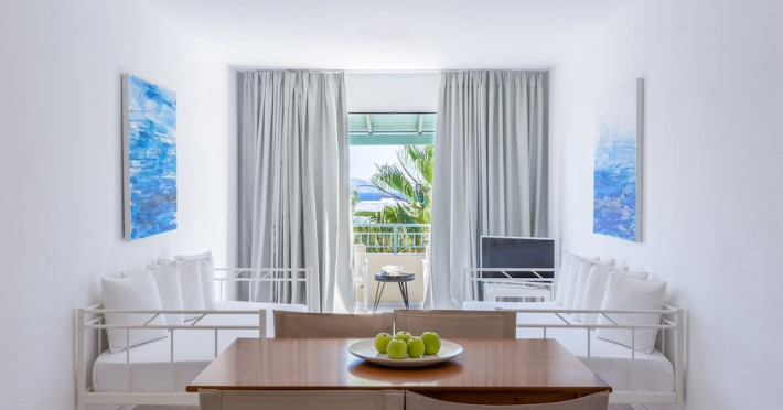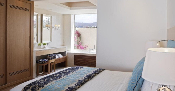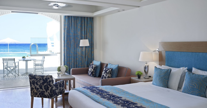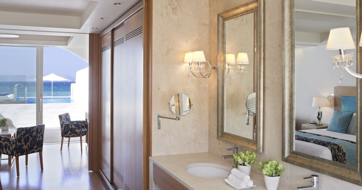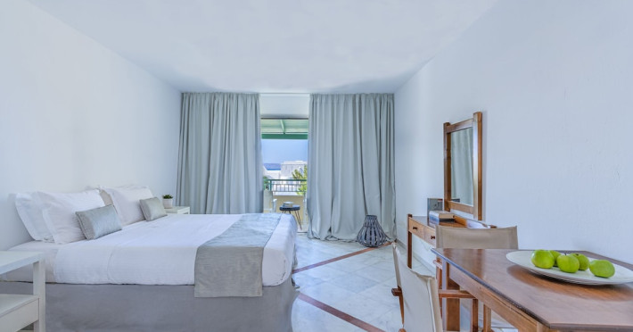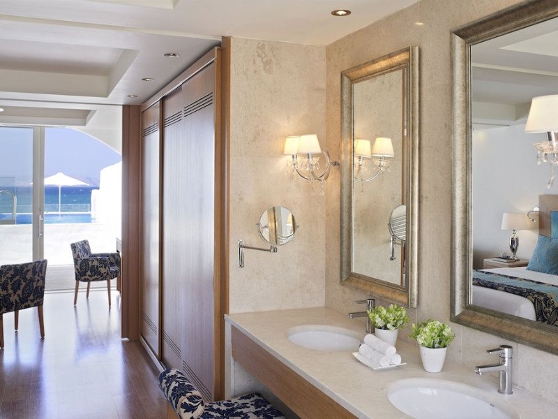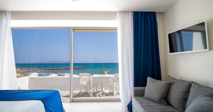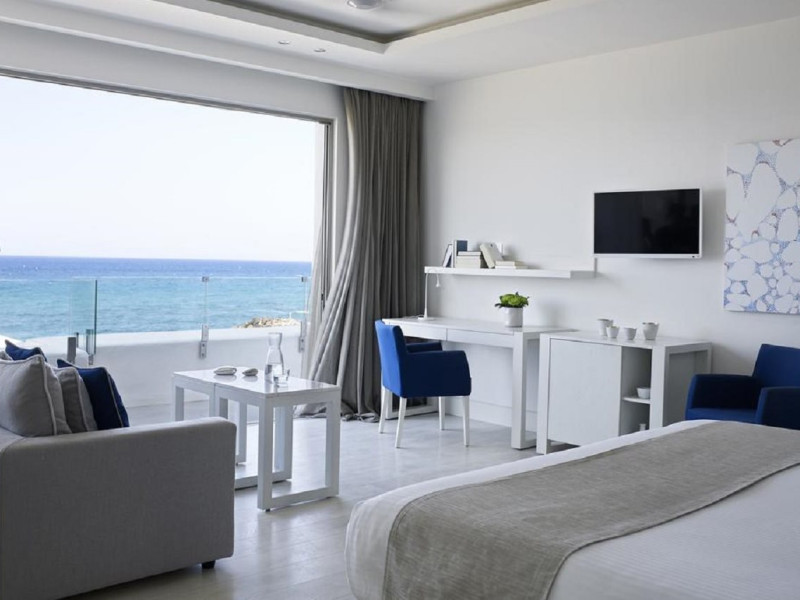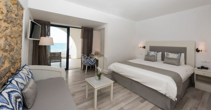 Facilities and services include 24-hour reception, 24-hour concierge services, lobby, lounge with terrace, Wi-Fi in all areas, luggage room, 3 outdoor swimming pools (10:00- 18:00), sunbeds & umbrellas, on-site private parking, chapel/church (for weddings & baptisms), conference & banqueting facilities, audiovisual equipment, doctor on call (extra charge), restaurants, bars, a playground, integrated children’s pool, spa & wellness center (10:00-18:00) with massages (extra charge), a fitness room (prior reservation required), and pets are allowed extra charge).Rooms feature air-conditioning/heating, Wi-Fi, direct-dial telephone, safety deposit box, flat-screen TV (satellite & music channels), mini fridge, coffee & tea facilities, bathtub/WC or shower/WC, hairdryer, bathroom amenities, bathrobe, slippers, balcony/terrace, pool/beach towels, room service (extra charge), maid service (daily), towel change (on request), linen change (daily), laundry & dry cleaning service (extra charge), Baby cot (on request, free of charge), highchair (on request at the restaurants), babysitting service (on request with extra charge).Note: - Some of the above facilities may be closed due to weather / seasonal conditions.- Pets are not allowed in the lobby, indoor areas and F&B outlets Valid vaccination certificate is required. Dogs & cats up to 10 kg are allowed in the bungalows Pets are allowed in the guests’ room, the gardens and the beach on a leash at all times.- Guests of Knossos Boutique accommodation units have full access to the facilities & services of Knossos Beach Bungalows & Suites in addition to the onsite annex facilities and services.Address: Kokkini Hani, P.O BOX 1177, 71500 Kokkini Hani, Crete, Greece.