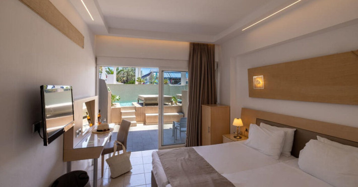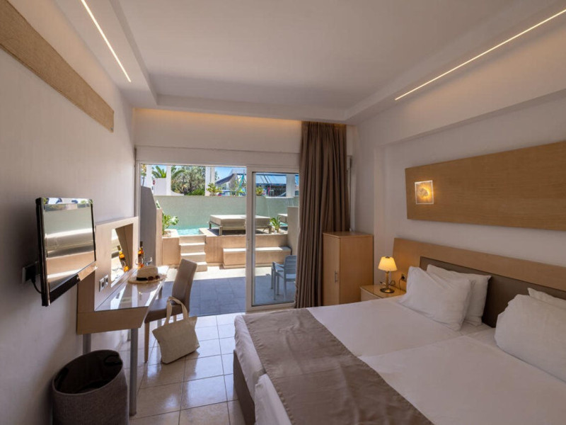 Facilities and services include 24-hour reception, lobby, lounge, mini market, souvenir shop, conference& banqueting facilities, outdoor swimming pool, garden, parking, airport transfer service (extra charge), car & bikerental, currency exchange, ATM, doctor on call (extra charge), bar, restaurant, spa (extra charge), Rooms feature wireless Internet access, air conditioning, T.V., direct telephone, safety deposit box, coffee and tea maker, fridge, balcony or terrace, hairdryer, and bathroom.**Please note that some of the above facilities may be closed due to weather / seasonal conditions.**Pets are not allowed**Only guests 16 years old and above can be accommodated.Address: Kolymbia, 85103 Rhodes, Greece.