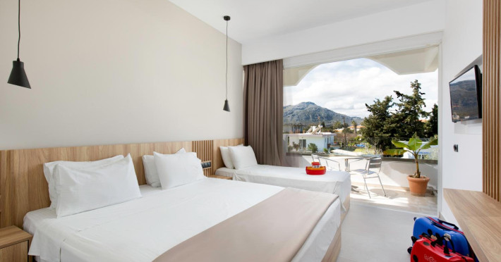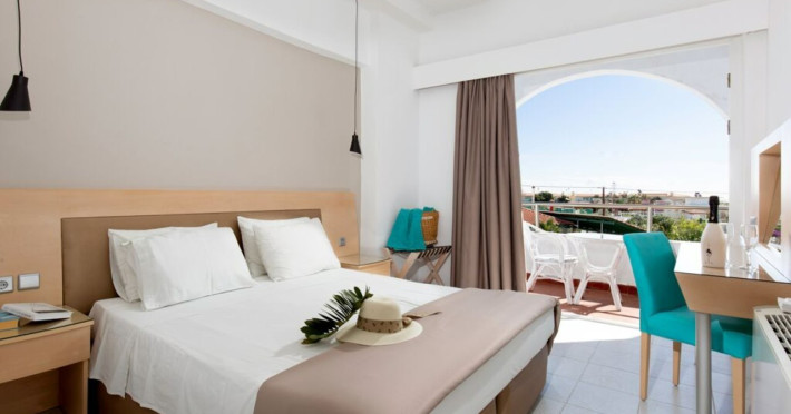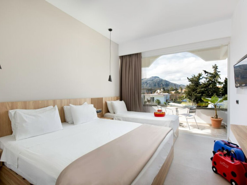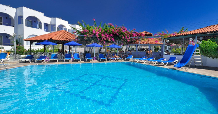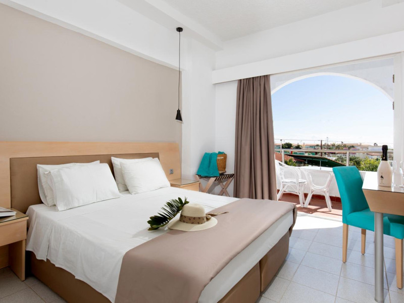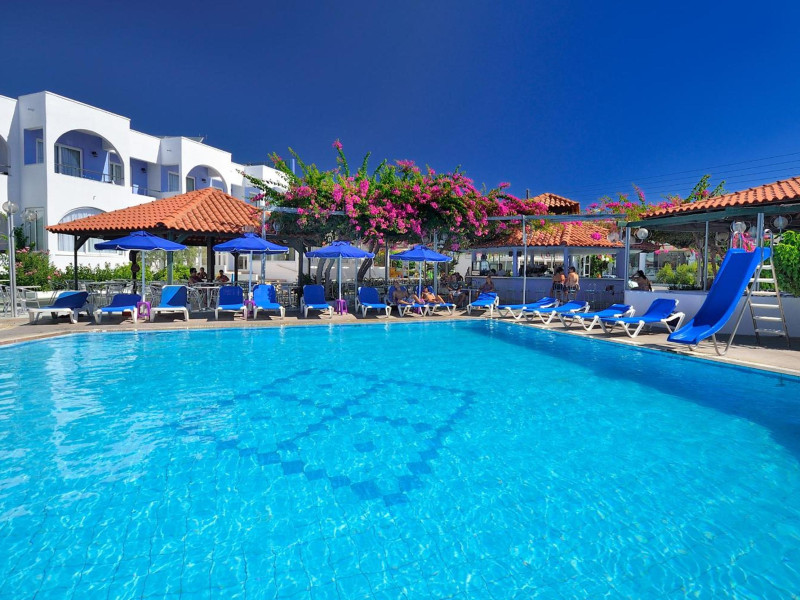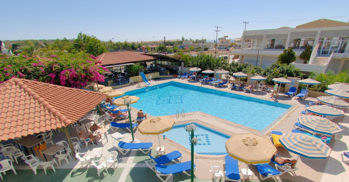 Facilities and service include 24-hour reception, internet access, bar, restaurant, laundry service (extra charge), TV lounge, outdoor swimming pool (08:00-20:00), sunbeds & umbrellas (free at the pool, with extra charge at the public beach), pool/beach towels (free), airport transfer service (on request with extra charge), doctor on call (extra charge), playground and babysitting service (on request with extra charge).Rooms feature air-conditioning/heating, internet access, telephone, safety deposit box, flat-screen TV (satellite channels), mini fridge, coffee/tea making facilities, bathtub/WC or shower/WC, hairdryer, bathroom, baby cot (on request) and balcony.NOTE:**Check in time: 14:00**Check out time: 11:00**Maid service (6 times per week),**Towel change (3 times per week)**Linen change (2 times per week)In case of choosing the option of "all inclusive":The All Inclusive-concept includes all meals (breakfast, lunch, dinner and snacks) and mealtime drinks such as soft drinks, beer, wine, water and alcoholic drinks, all of local brands. Drinks are served from morning until late evening (approx until 22.-24.00 hrs). Opening times vary between different hotels. In certain hotels the activities program is also included.Please note that some of the above facilities may be closed due to weather / seasonal conditions.Address: 1 Athens Str. Kolimbia, Rhodes, 85103, Greece