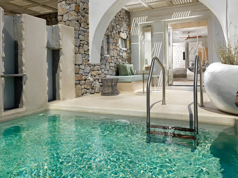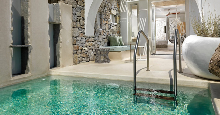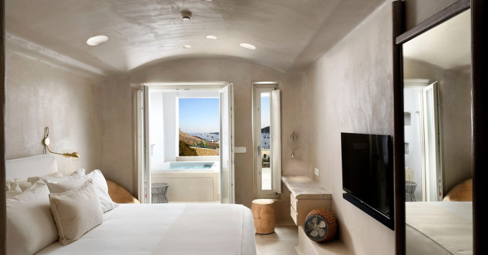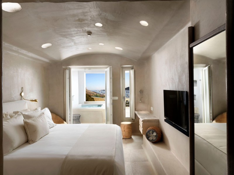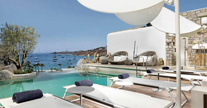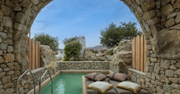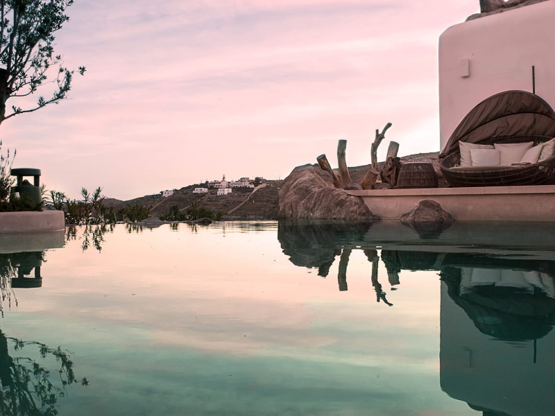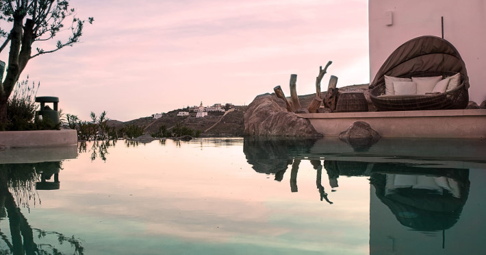 KOVE STANDS FOR ENLIGHTMENTHere, where the natural and insurmountable Cycladic light dominates. Here, where reality is magical and becomes a life experience. Welcome to Kove Mykonos, a new space in Ornos Bay, opened its doors in June 2016. It includes a variety of cultural elements blended with refined luxury in its spaces, revealing the true meaning of Cycladic hospitality and creating a combination consisting of smiles, history, location and tradition. The 35 rooms of Kove have been designed by famous architect and feature designer furniture from Kenneth Cobonpue and Patricia Urquiola.Kove consists of 10 suites and 25 rooms, each one with its own unique design and features. Every single corner of Kove has its own breath and vitality. Since the first days of operation it generously spreads its positive mood and makes people happy. It carries a sense of confidence, comfort and luxury in an ideal way. It is as if it requires you to follow the road to paradise, a road that leads to relaxation and rejuvenation. It alerts one’s thoughts, aiming at resting and detoxing you from the pressure and stress of everyday life.