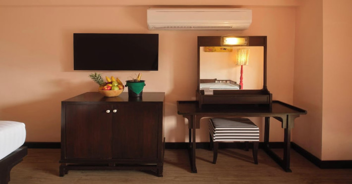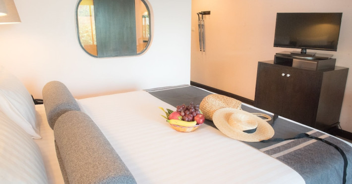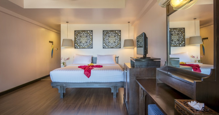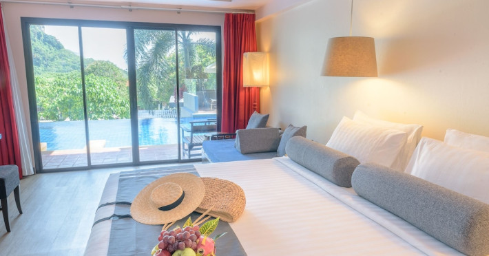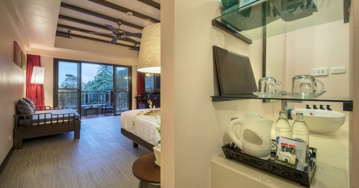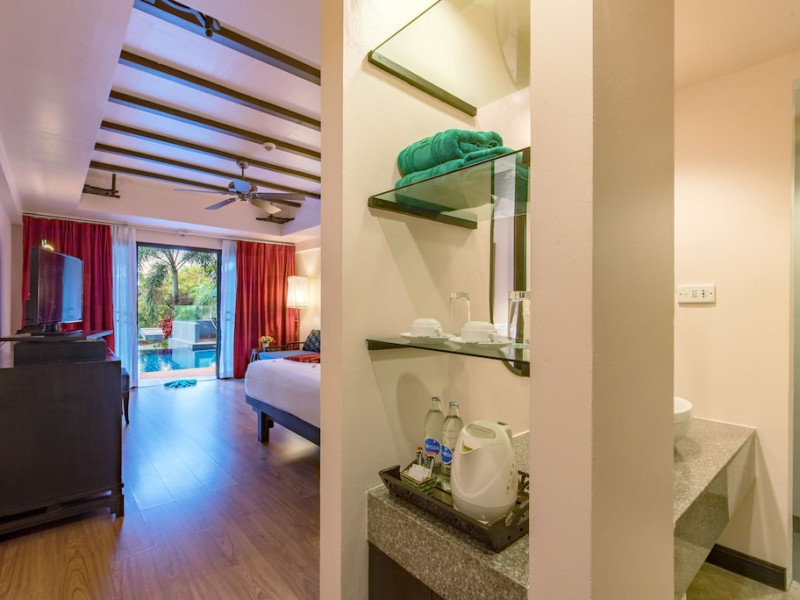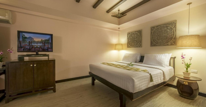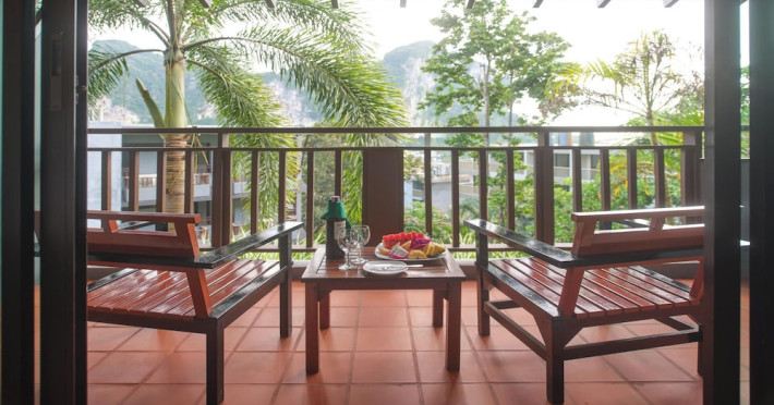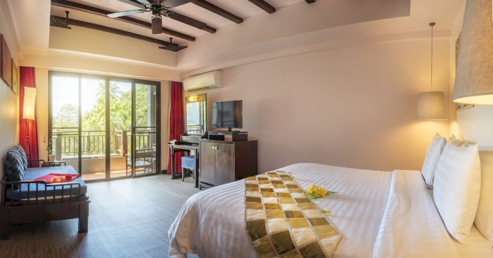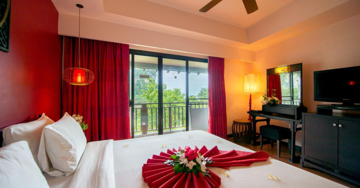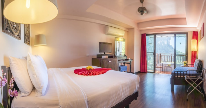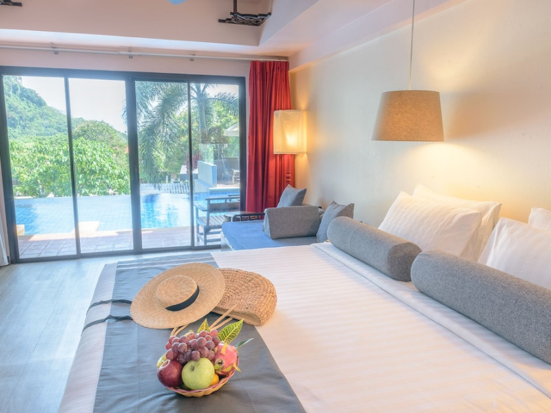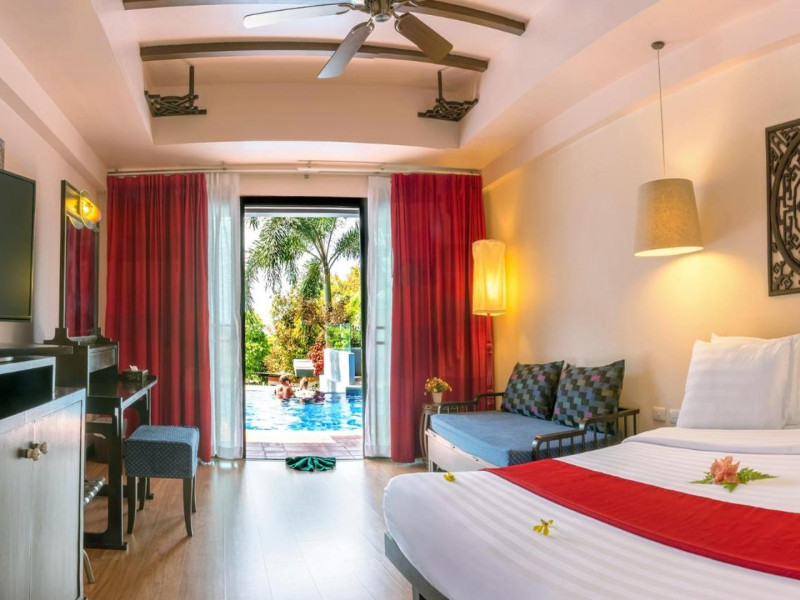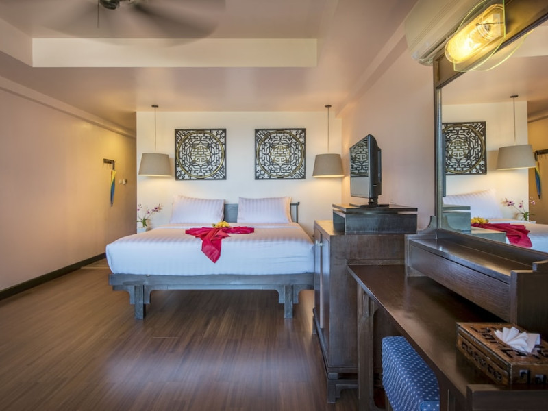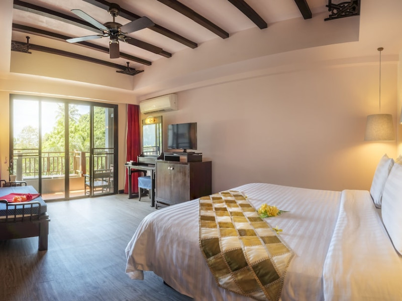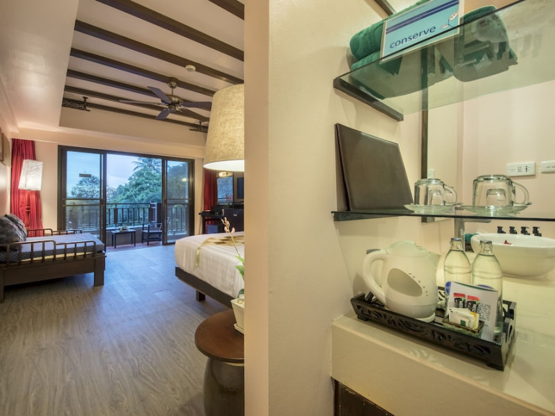 Located in Ao Nang, Krabi Chada Resort - SHA Plus offers stylish, air-conditioned rooms with private patios or balconies/terraces and views of the Andaman Sea or tropical landscape. Rooms feature refrigerators, minibars, 32-inch flat-screen televisions with digital programming, and complimentary wireless internet access. Bathrooms include designer toiletries and hair dryers. Guests can enjoy amenities such as an outdoor pool, fitness center, and on-site dining options including Jinda Coffee House with garden views, a bar/lounge, and a swim-up bar. A buffet breakfast is available daily (surcharge). The resort also offers room service (during limited hours), babysitting (surcharge), wedding services, a business center, dry cleaning/laundry services, and a 24-hour front desk. Airport shuttle service is available (surcharge). Additional services include a tour desk, concierge, luggage storage, and ticket service. Complimentary parking is available. Guests can relax at the spa, hot tub, or enjoy a massage. The Krabi Cha Da Resort is a Leisure, Resort hotel. Located in Beach - Ao Nang Beach area. The nightlife/restaurants are easily accessible by taxi or bus from the hotel.
