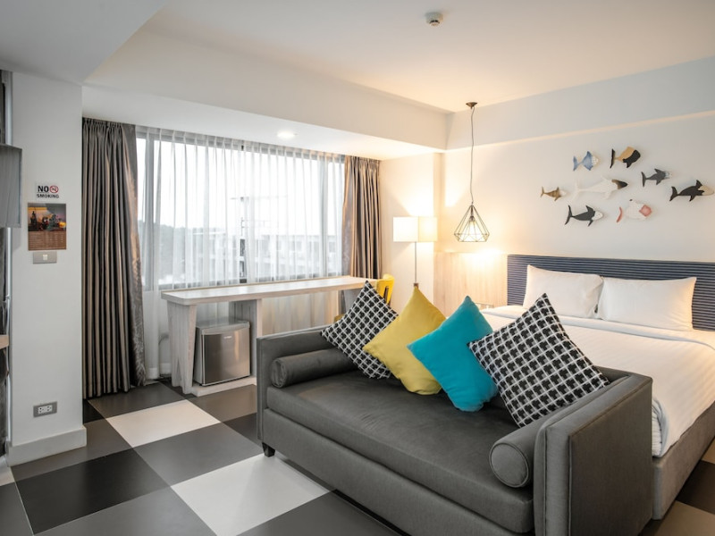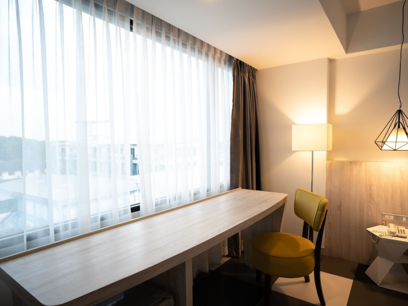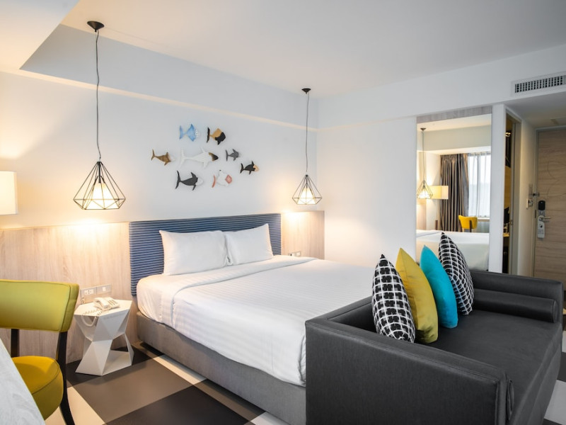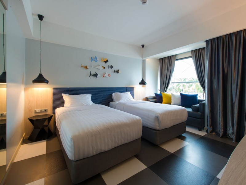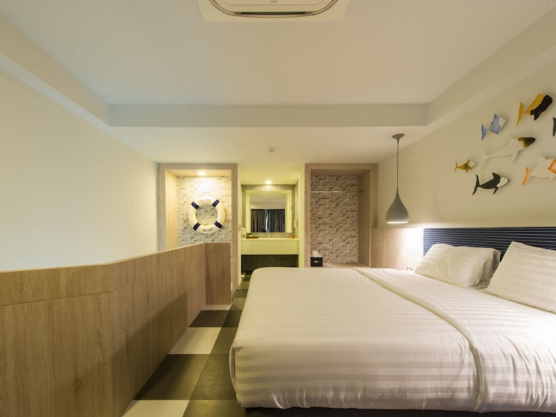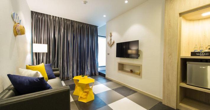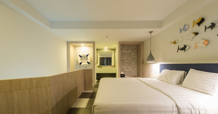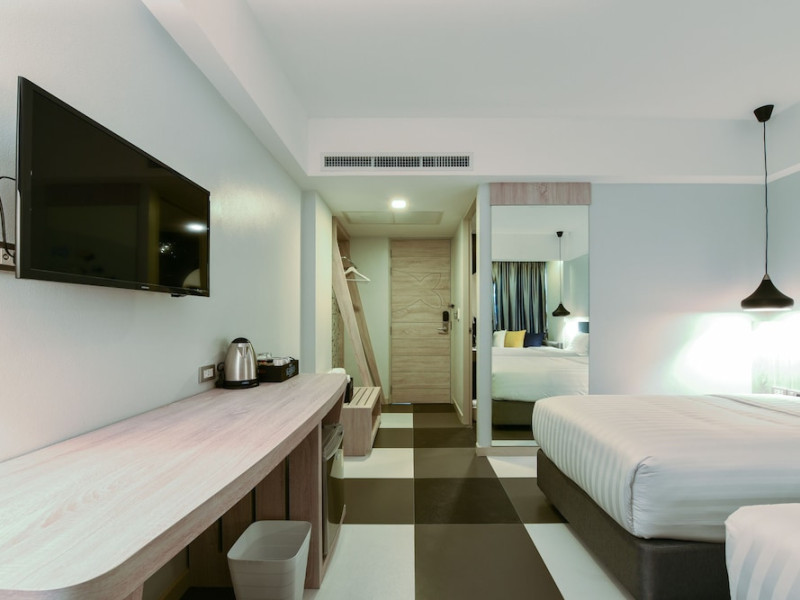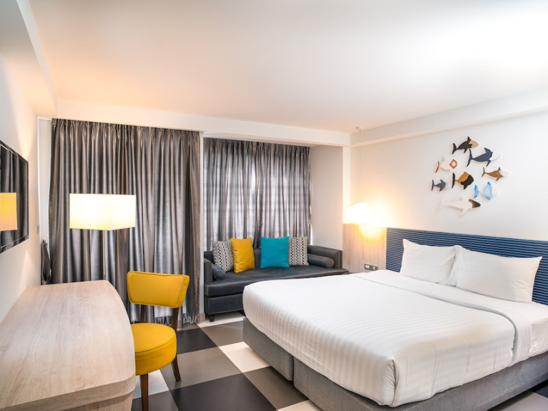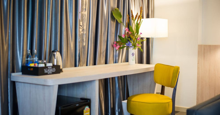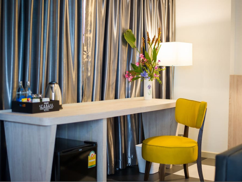 Krabi SeaBass Hotel, located in Krabi town, offers accommodation with free WiFi, a restaurant, and a bar. Guests can enjoy an outdoor pool, a garden, a shared lounge, and a sun terrace. The hotel provides a 24-hour front desk, room service, dry cleaning/laundry services, luggage storage, a ticket service, and a gift shop. Bike hire, car hire, and shuttle services are available. Airport transfers are offered for a surcharge. The air-conditioned rooms feature a flat-screen TV with satellite channels, a refrigerator, a kettle, a desk, and a private bathroom equipped with a shower, free toiletries, and a hairdryer. Some rooms include a seating area, a balcony or terrace, and city views. Buffet breakfast is available daily for a fee. The hotel is near Khao Khanap Nam and Krabi Hospital. Krabi International Airport is approximately 11 km away. The Krabi Seabass Hotel is a hotel.