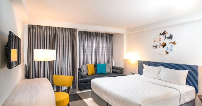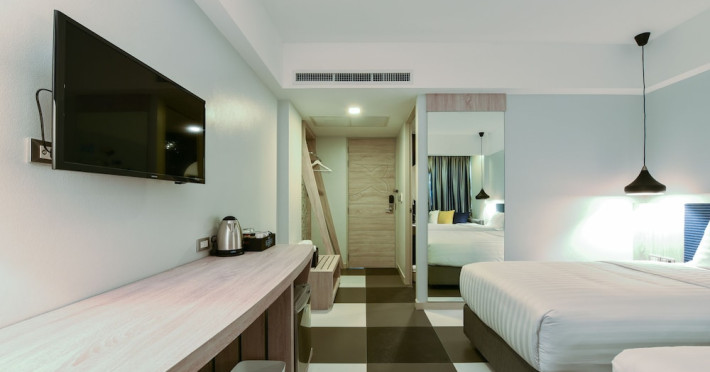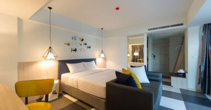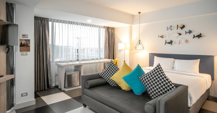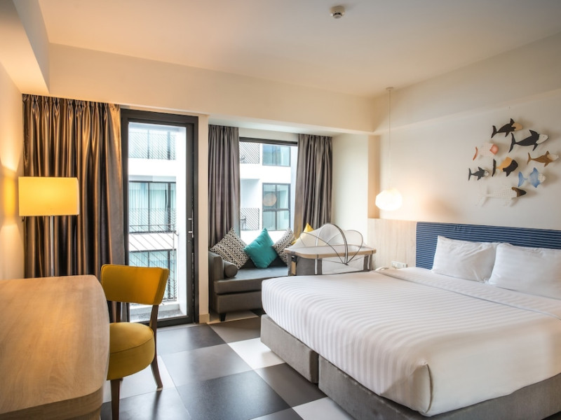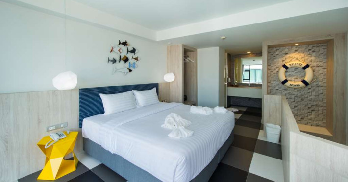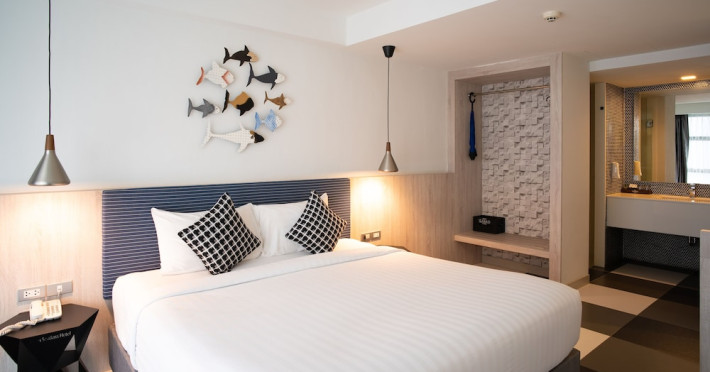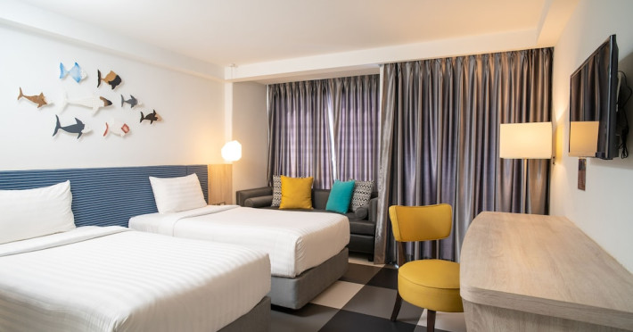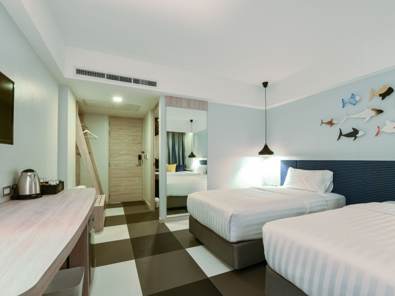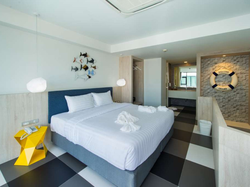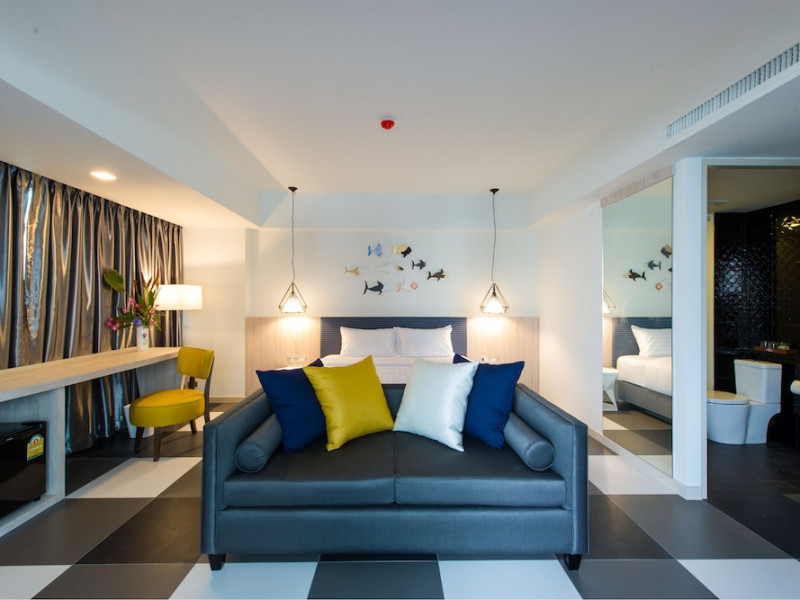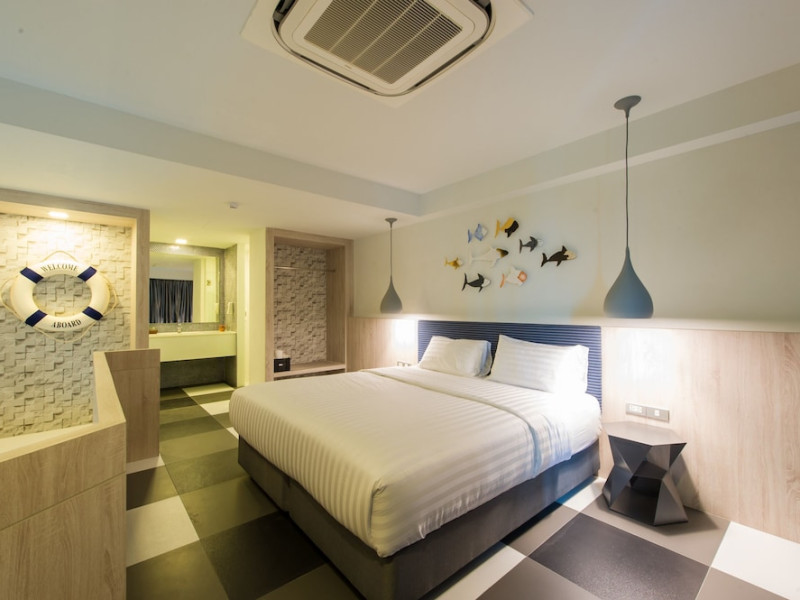 Krabi SeaBass Hotel, located in Krabi town, offers accommodation with free WiFi, a restaurant, and a bar. Guests can enjoy an outdoor pool, a garden, a shared lounge, and a sun terrace. The hotel provides a 24-hour front desk, room service, dry cleaning/laundry services, luggage storage, a ticket service, and a gift shop. Bike hire, car hire, and shuttle services are available. Airport transfers are offered for a surcharge. The air-conditioned rooms feature a flat-screen TV with satellite channels, a refrigerator, a kettle, a desk, and a private bathroom equipped with a shower, free toiletries, and a hairdryer. Some rooms include a seating area, a balcony or terrace, and city views. Buffet breakfast is available daily for a fee. The hotel is near Khao Khanap Nam and Krabi Hospital. Krabi International Airport is approximately 11 km away. The Krabi Seabass Hotel is a hotel.