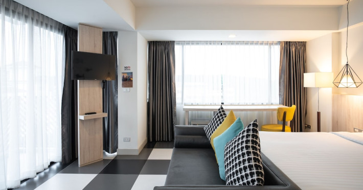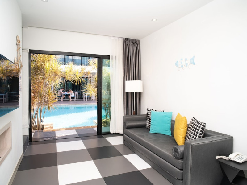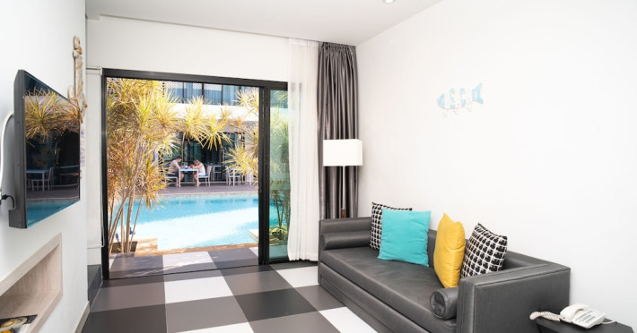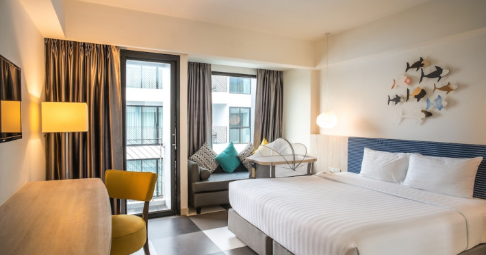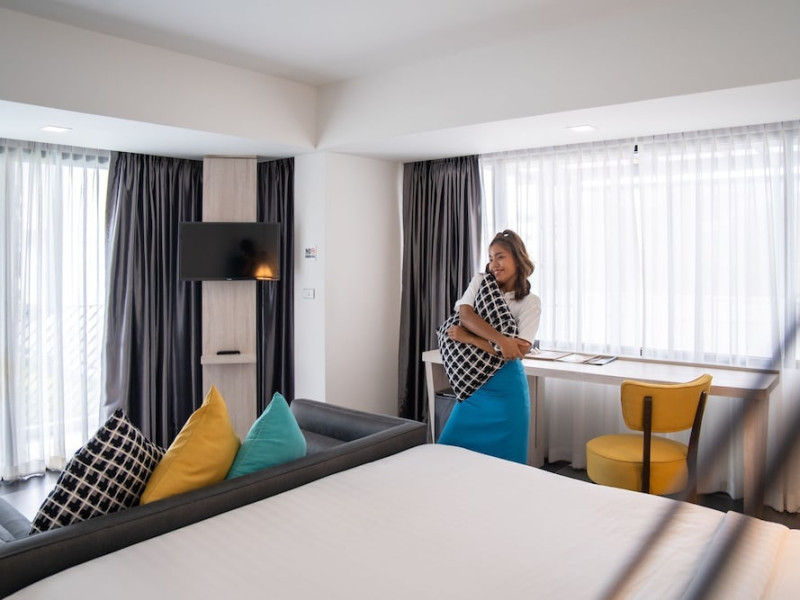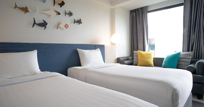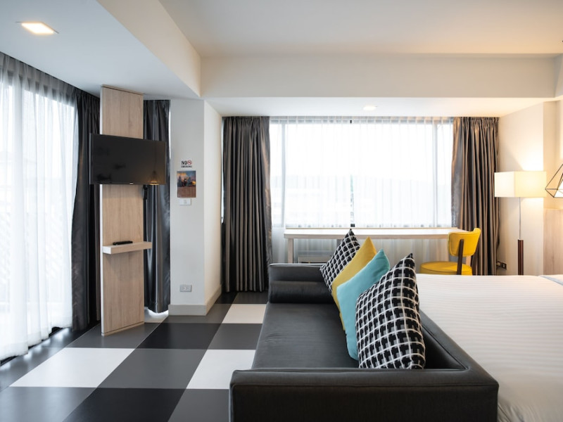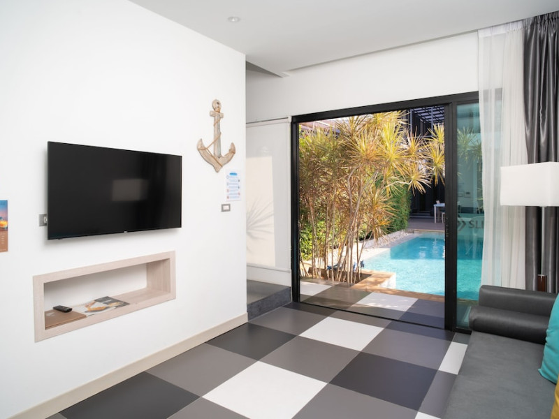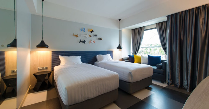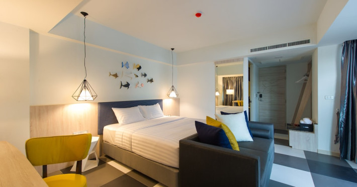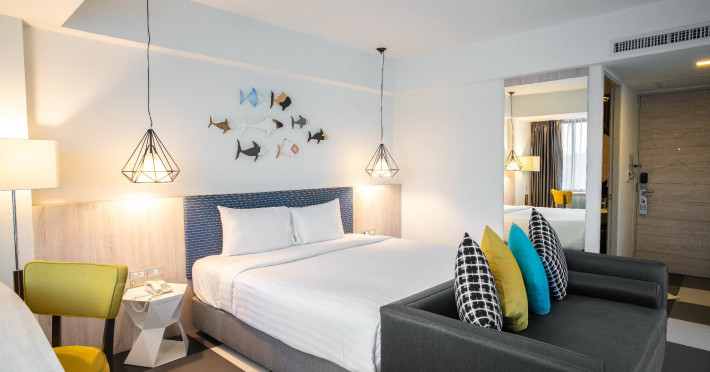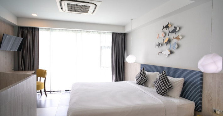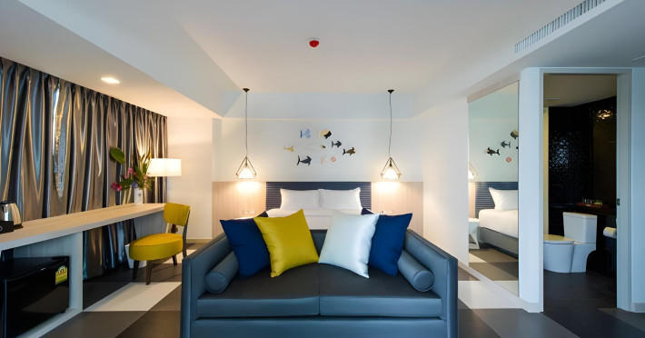 Krabi SeaBass Hotel, located in Krabi town, offers accommodation with free WiFi, a restaurant, and a bar. Guests can enjoy an outdoor pool, a garden, a shared lounge, and a sun terrace. The hotel provides a 24-hour front desk, room service, dry cleaning/laundry services, luggage storage, a ticket service, and a gift shop. Bike hire, car hire, and shuttle services are available. Airport transfers are offered for a surcharge. The air-conditioned rooms feature a flat-screen TV with satellite channels, a refrigerator, a kettle, a desk, and a private bathroom equipped with a shower, free toiletries, and a hairdryer. Some rooms include a seating area, a balcony or terrace, and city views. Buffet breakfast is available daily for a fee. The hotel is near Khao Khanap Nam and Krabi Hospital. Krabi International Airport is approximately 11 km away. The Krabi Seabass Hotel is a hotel.
