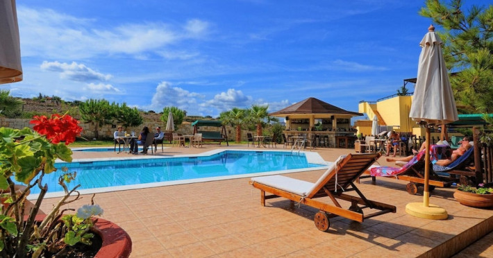 The complex consist of 14 studios surrounded by gardens, a swimming pool area with a separate children’s pool, restaurant and pool bar, WiFi connection (extra charge) and parking.All studios are equipped with bath/shower, kitchenette, TV, A/C (extra charge) and safe (extra charge).Address: Epidavrou str, Anissaras, Hersonissos, Crete, Greece