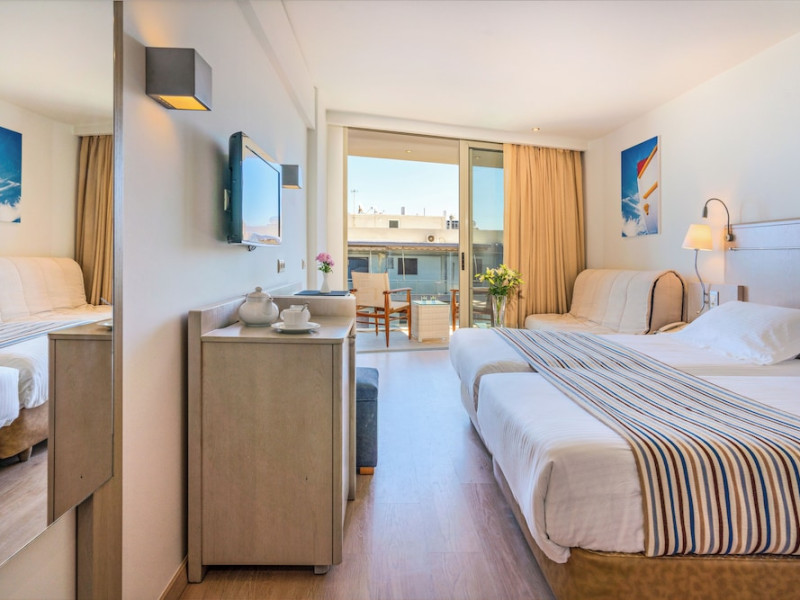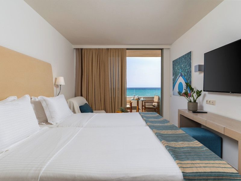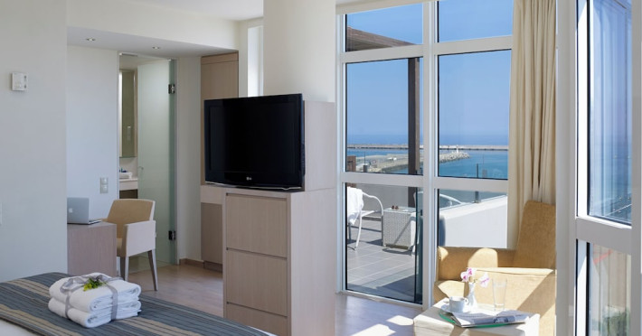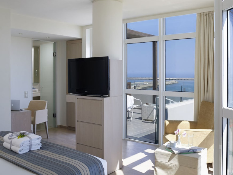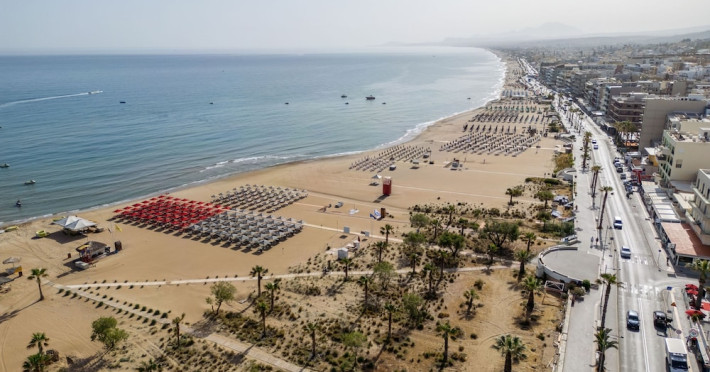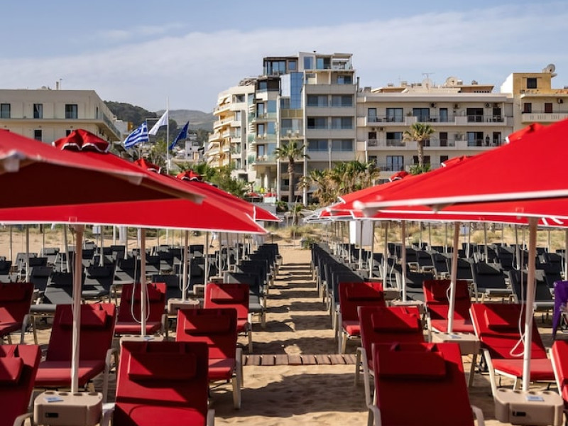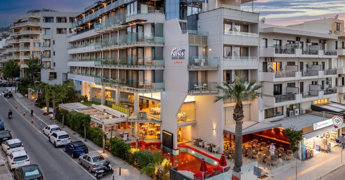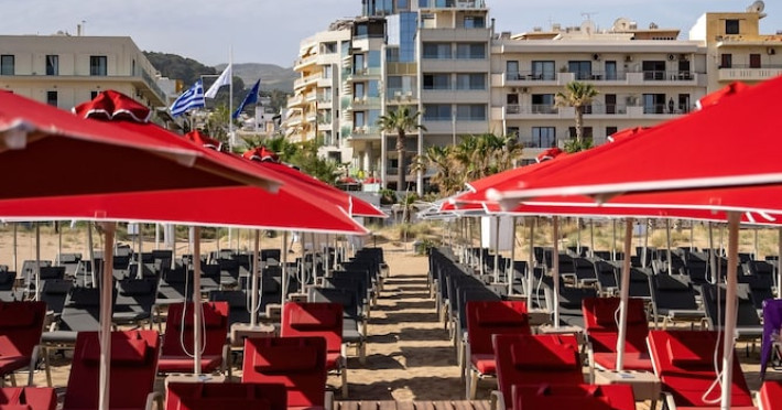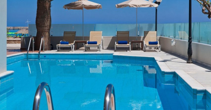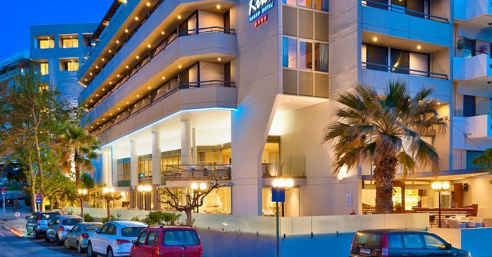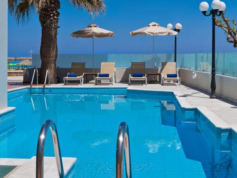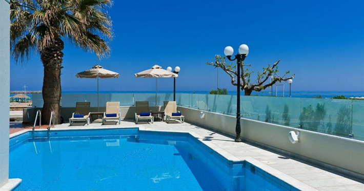 The Kriti Beach Hotel has a restaurant, a bar, a swimming pool, Internet corner, billiards and a weekly Greek theme night. The air-conditioned guestrooms have a bathroom/shower, hairdryer, TV, telephone, radio, fridge, safe deposit box (extra fee) and balcony. Address: 18 A. Papanastasiou Str., 74100 Rethymnon, Crete, Greece.