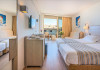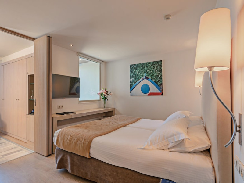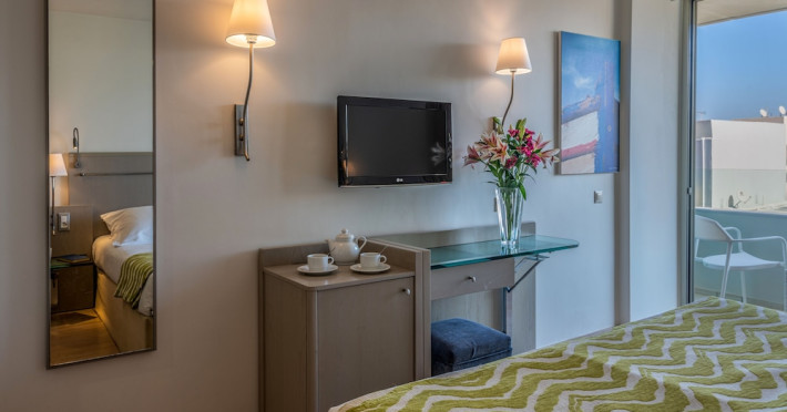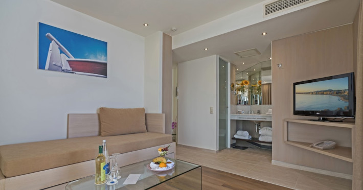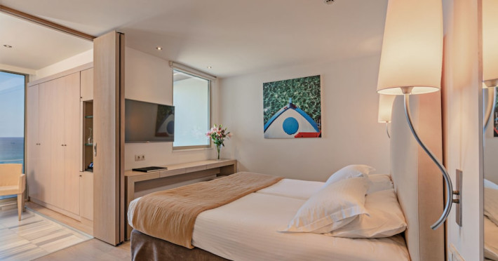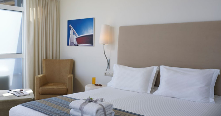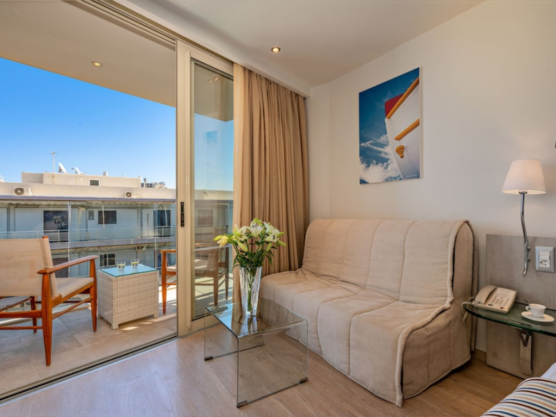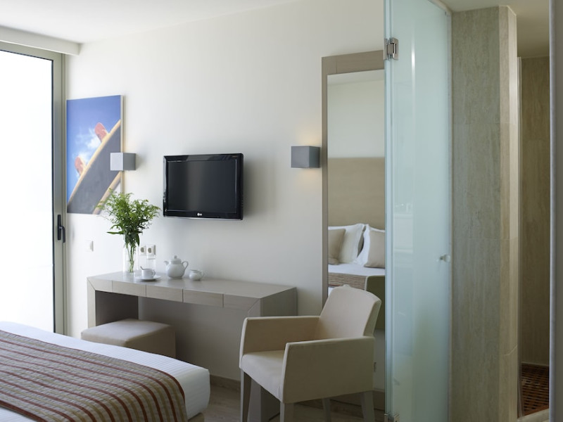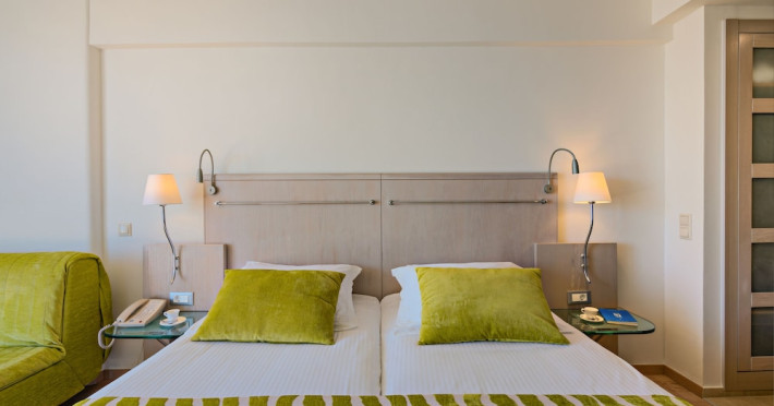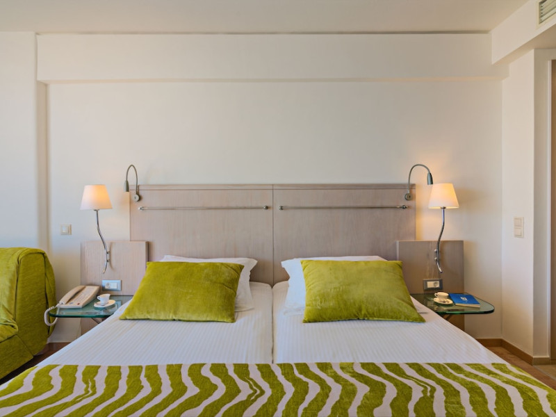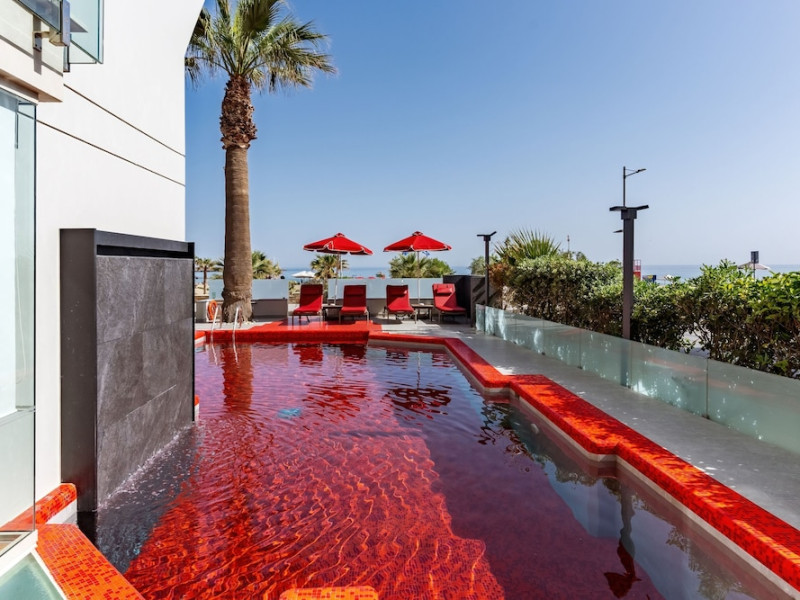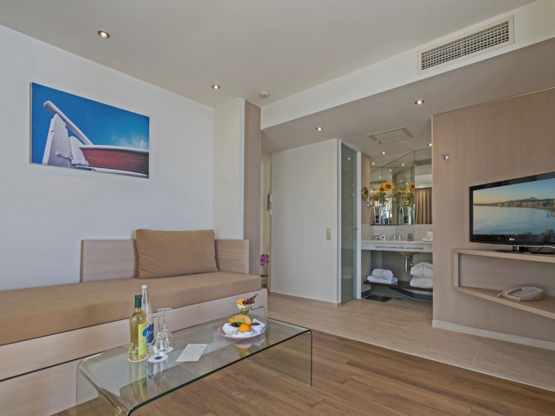 The Kriti Beach Hotel has a restaurant, a bar, a swimming pool, Internet corner, billiards and a weekly Greek theme night. The air-conditioned guestrooms have a bathroom/shower, hairdryer, TV, telephone, radio, fridge, safe deposit box (extra fee) and balcony. Address: 18 A. Papanastasiou Str., 74100 Rethymnon, Crete, Greece.