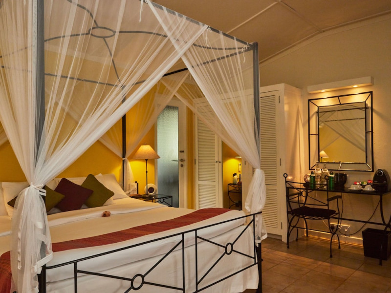 Room features air-conditioning, overhead ceiling fan, sitting area, minibar refrigerator, Nespresso machine with tea/coffee facilities, IDD telephone, Bluetooth alarm clock or sound bar for streaming music, safe, bathroom with bath accessories,