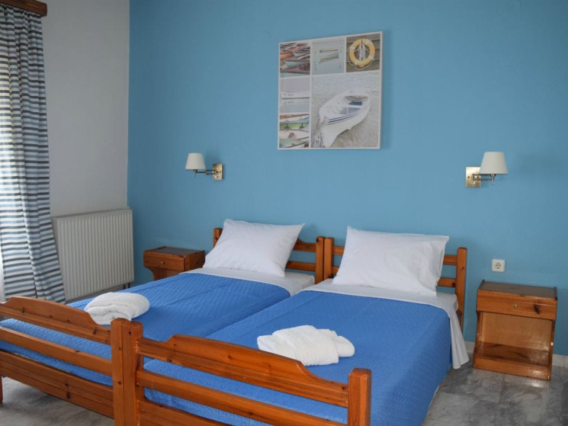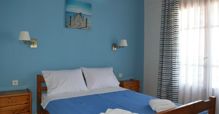 Kyani Akti Apartments is a small family business located right in front of the beach at the east coast of Nea Skioni Halkidiki. There are 5 upper floor apartments overlooking the sea and 4 ground floor apartments with sea view and direct access to the beach. All of them have one bedroom, a separate kitchen with cooking facilities and a bathroom. Our double apartments can host 2 persons each and an extra person in a sofa bed or guest bed. Our triple apartments can host 3 persons each and an extra person in a sofa bed or guest bed.You can find a free public parking area right outside of the house and the distance from market and restaurants is about 5 minutes away.Kyani Akti apartments was established in 1976 and ever since we keep developing our business according to our guests needs. We are always there to assist you and offer you carefree holidays and unforgettable memories.Welcome to Kyani Akti family!