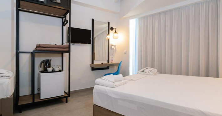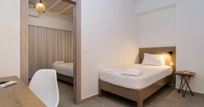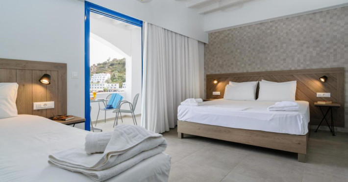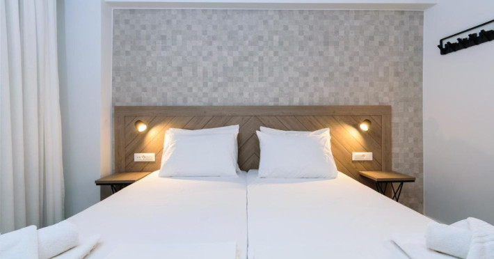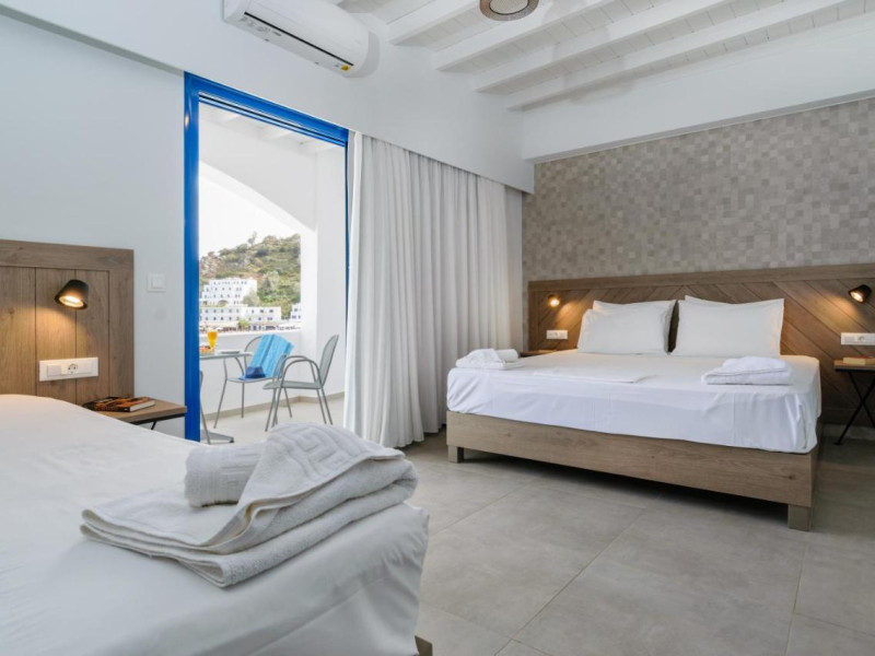 Kyma is only 20 metres from the nearest beach, and right across the water taxis that connect to the beaches of Glika Nera, Finika and Marmara. These beaches can also be accessed on foot.Rooms feature tiled floors and beamed wooden roofs.
