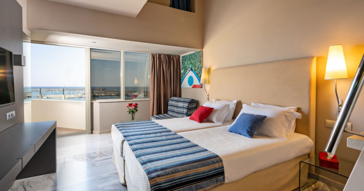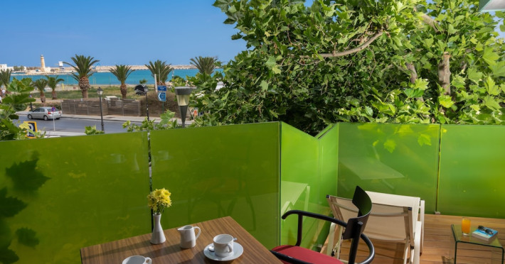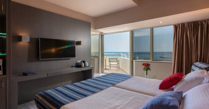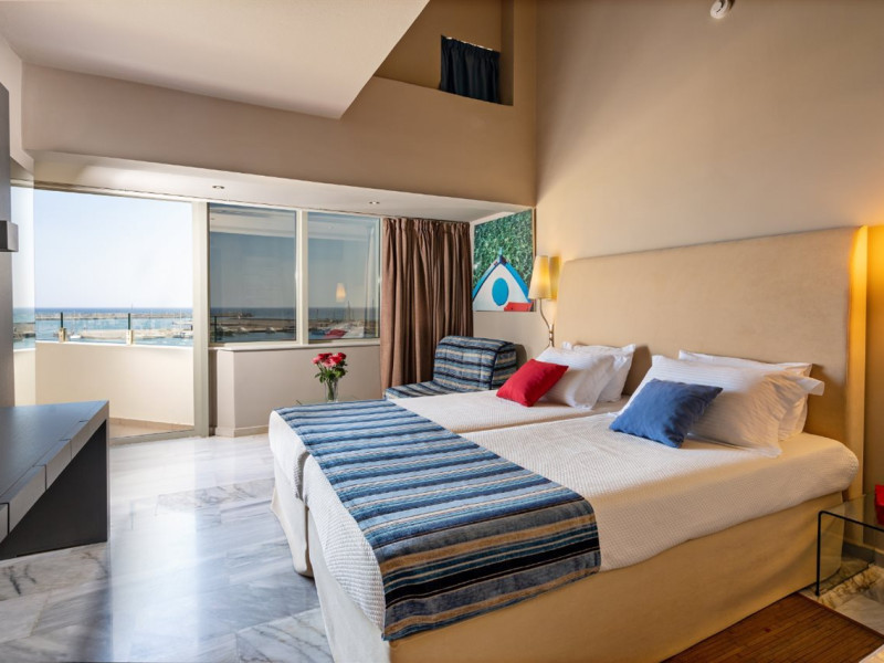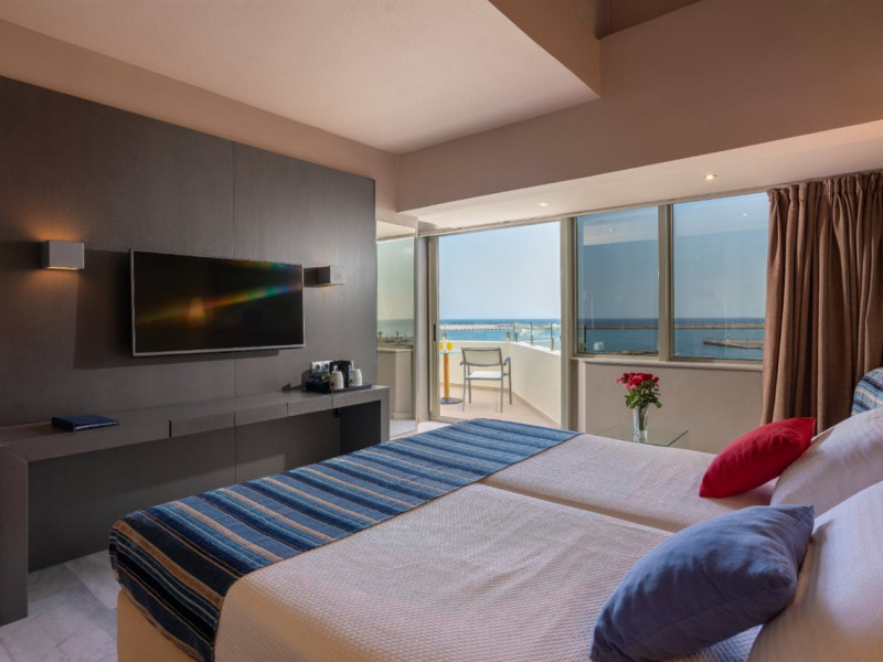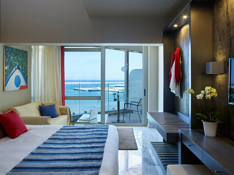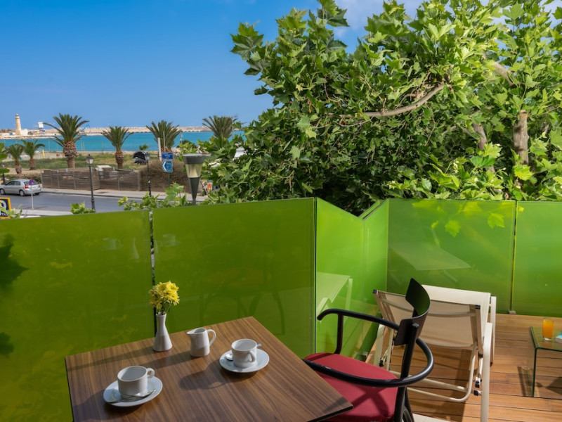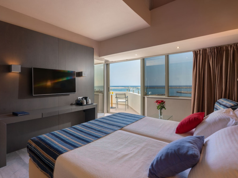 Facilities and services include a 24-hour reception, swimming pool, WI-FI access, a restaurant, a bar, room service, an elevator, wellness center, complimentary towels for beach and swimming pool, spa facilities (extra charge), fitness facility (extra charge), dry-cleaning and ironing service (extra charge), luggage storage, concierge services.conference hall (extra charge), doctor on call (extra charge) and car parking.The rooms are equipped with air conditioning, WI-FI, a smart LED TV 50", a digital safe box, a telephone, coffee/tea-making facilities, kettle,mattresses and pillows from COCO-MAT, a mini-bar (extra charge), a fridge, private bathroom with wellness shower, hairdryer, toiletries and magnifying mirror, bath robes, slippers and private balcony or terrace.*Check-in at 14.00 and check-out at 12.00* Pillow menu*In-room breakfast (additional charge)* Beach - life guards, great water sports, and free access for our guests to sun beds, umbrellas and beach towels at our sister accommodation Kriti Beach Hotel close by,*Complimentary wheelchairs for guests with disabilitiesAddress: Plateia Agnostou Stratiotis, Rethymno, 741 00, Crete, Greece.