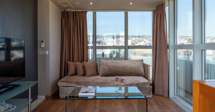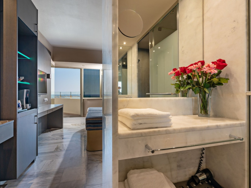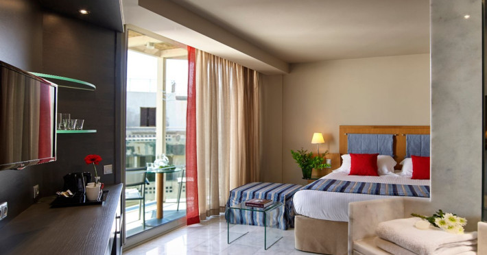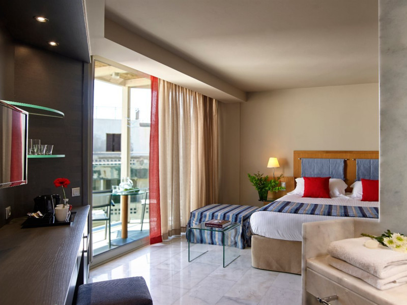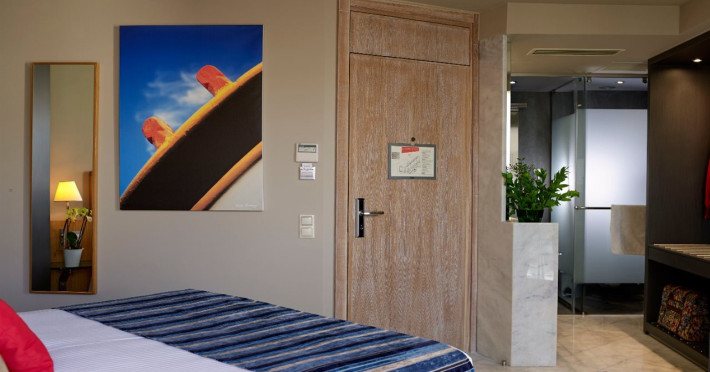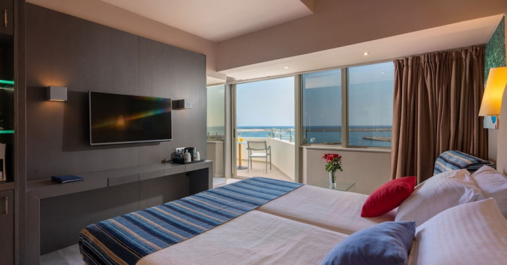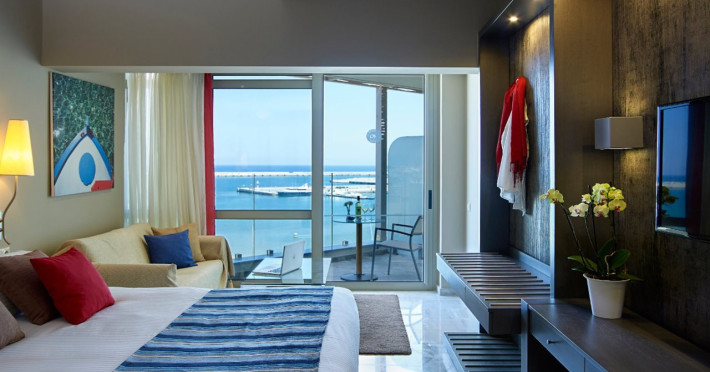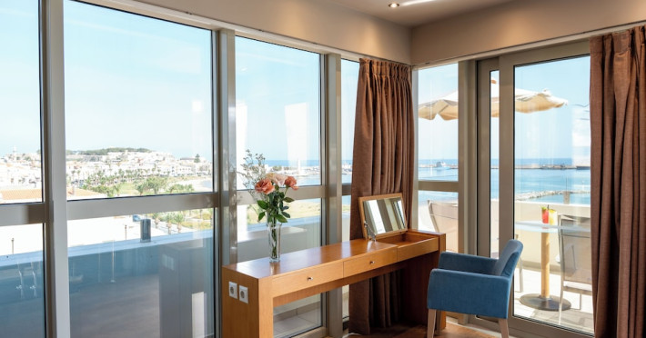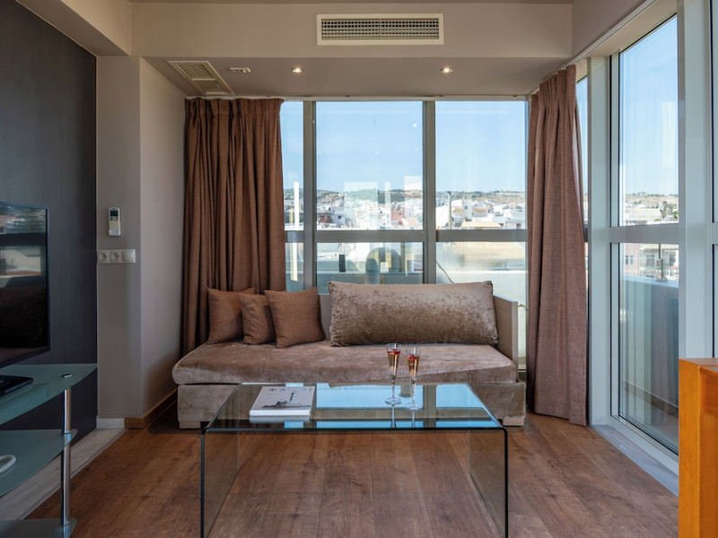 Facilities and services include a 24-hour reception, swimming pool, WI-FI access, a restaurant, a bar, room service, an elevator, wellness center, complimentary towels for beach and swimming pool, spa facilities (extra charge), fitness facility (extra charge), dry-cleaning and ironing service (extra charge), luggage storage, concierge services.conference hall (extra charge), doctor on call (extra charge) and car parking.The rooms are equipped with air conditioning, WI-FI, a smart LED TV 50", a digital safe box, a telephone, coffee/tea-making facilities, kettle,mattresses and pillows from COCO-MAT, a mini-bar (extra charge), a fridge, private bathroom with wellness shower, hairdryer, toiletries and magnifying mirror, bath robes, slippers and private balcony or terrace.*Check-in at 14.00 and check-out at 12.00* Pillow menu*In-room breakfast (additional charge)* Beach - life guards, great water sports, and free access for our guests to sun beds, umbrellas and beach towels at our sister accommodation Kriti Beach Hotel close by,*Complimentary wheelchairs for guests with disabilitiesAddress: Plateia Agnostou Stratiotis, Rethymno, 741 00, Crete, Greece.