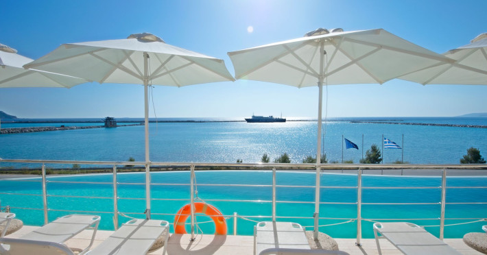 Luxury HotelKymi Palace is located in the picturesque Beach (Paralia) of Kymi built as an amphitheater overlooking the port of Kymi and the endless blue of the Aegean Sea.Kymi Palace offers 57 rooms and 6 suites, each with a private balcony or terrace overlooking the magnificent blue Aegean.Enjoy your happy moments of relaxation in the luxurious rooms and suites, making your holiday unique.A plain and elegant personal place to stay, with simple clean lines and plain decor.Comfortable, fully equipped rooms and luxurious suites with private pool, fireplace and terraces overlooking the sea where you can enjoy your food or drink and relax your mind admiring the Aegean Sea. ConferencesGreat opportunity to meet your associates, customers and employees of your companyOur facilities offer luxury and comfort for conferences and company meetings. Rooms can be arranged according to your needs with any equipment needed since we provide modern devices namely projectors, conference boards and complete audiovisual installation such as:Loudspeaker supported facility for 250 peopleWireless microphones (handheld and lapel)Conference system microphonesTranslation support systemLive music support system3x2, high resolution projection system (pc, video)TV, DVD Player, CD PlayerSatellite connection projectionDvd, power point etc. presentation supportPodium laptop connection supportSpecial effects lightingConsole fully controlled (dimmable) hall lightingFree use of wireless & wired internet in all roomsFlip chartsWhite boardLaser pointerCapacity of each room may vary from 10 to 250 people. WeddingThe wedding of your dreams at Kymi PalaceThe complex has indoor and outdoor halls fully equipped to offer you luxury and comfort for your wedding.For those who choose a dream wedding in the summer you may organize it under the starry sky, by the sea, at the beautifully lit pool and make that day special.The hotel staff is ready to fulfill your desires and arrange the spaces according to your needs. RestaurantIdyllic atmosphere with soft music by the sea and accompanied by the beautifully lit poolIts restaurant and terrace are located in the main building of the hotel overlooking the Aegean Sea and the pool.Start early in the morning with your favorite coffee and a rich breakfast buffet with many local and homemade products.Later in the day you can enjoy lunch or dinner, prepared by our experienced chefs with passion and pure ingredients in an idyllic atmosphere with soft music by the sea and accompanied by the beautifully lit pool.Working hours08:00-10:30 Breakfast13:00–16:00 Lunch a la carte13:30–15:30 Lunch Buffet (seasonally or in high demand periods)20:00–24:00 Dinner a la carte20:30–22:00 Dinner Buffet (seasonally or in high demand periods) Lobby BarEnjoy your coffee or drink looking at the beautiful view of the AegeanLobby Bar is located next to the restaurant and reception. Its large doors let you enjoy the wonderful view of the sea while having your coffee or drink.On the terrace of the Lobby Bar you can spend your pleasant evenings overlooking the beautifully lit pool, enjoying your favorite drink with your company.Working hours:8:00 AM-24:00 Coffee, Drinks and Snacks Pool BarPoolside with refreshing cocktails, drinks, coffee, snacks and pastriesPool Bar is next to the swimming pools (adults' and children's) of the hotel, where you can enjoy a refreshing cocktail, a drink, a coffee, warm and cold snacks and traditional local sweets.You can enjoy varieties of seafood and summer dishes accompanied by ouzo or raki, by the pool.During the week in the summer season, you can enjoy a drink by the pool, along with various themed music nights.Working hours:10:30-24:00 Coffee, Drinks and Snacks13:00–16:00 Lunch a la carte20:00–24:00 Dinner a la carte