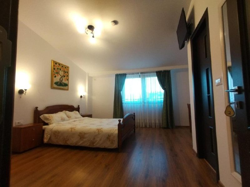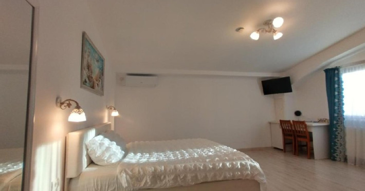 Dotari camere: Camera dubla twin, cu o suprafata de 18 mp, 2 paturi, baie cu dus,uscator de par, minifrigider, TV, prosoape, AC, internet. Camera dubla king deluxe, cu o suprafata de 21 mp, baie cu cada, uscator de par, minifrigider, TV, prosoape, AC, internet. - copiii cu varsta intre 0 - 6.99 ani, au gratuitate fara pat suplimentar;