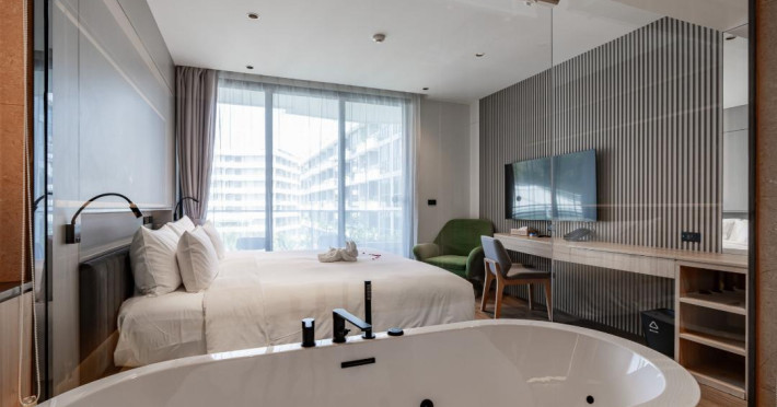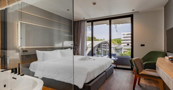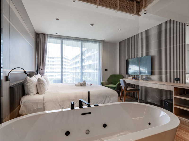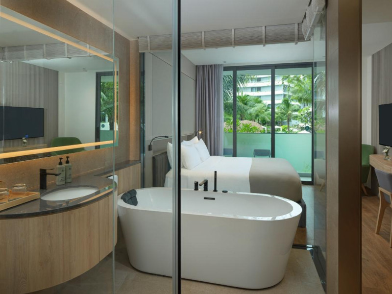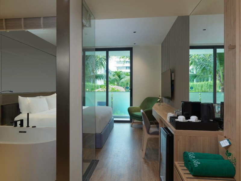 Located near Layan Beach in Choeng Thale, La Green Hotel & Residence offers a variety of accommodations and amenities for a lively and fun stay. Guests can enjoy an outdoor swimming pool, a fitness center (including an indoor gym and CrossFit arena), and a full-service spa with massage treatments, a sauna, and yoga sessions. Dining options include a restaurant, room service (during limited hours), a bar/lounge, and a poolside bar. A buffet breakfast is available daily for a fee. The hotel features complimentary wireless internet access, concierge services, a 24-hour front desk, multilingual staff, and dry cleaning/laundry services. Airport transfers are available for a surcharge, and free self-parking is provided. The air-conditioned rooms include Smart TVs, satellite television, safes, coffee/tea makers, and bathrooms with hair dryers and bathrobes. Housekeeping is available on request. The hotel also offers a Kids Club, a complimentary beach shuttle, and tour assistance. The La Green Hotel and Residence is a hotel.