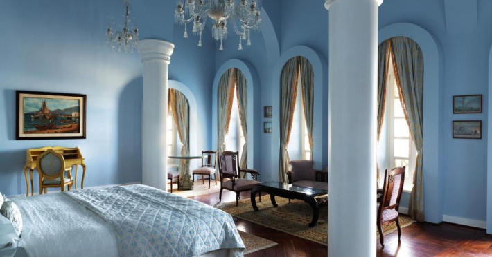 Proiectată de colecționarul de antichități și designerul de interior Amr Khalil, La Maison Bleue se află elegant pe malul Mării Roșii. Imprumutand influențe arhitecturale din Italia, Turcia, Siria și Africa de Nord, cu mobilier și ornamente europene din ultimele 3 secole, La Maison Bleue oferă o evadare senină și atemporală. Suitele au vedere la Marea Roșie sau la lanțul muntos al deșertului vestic.