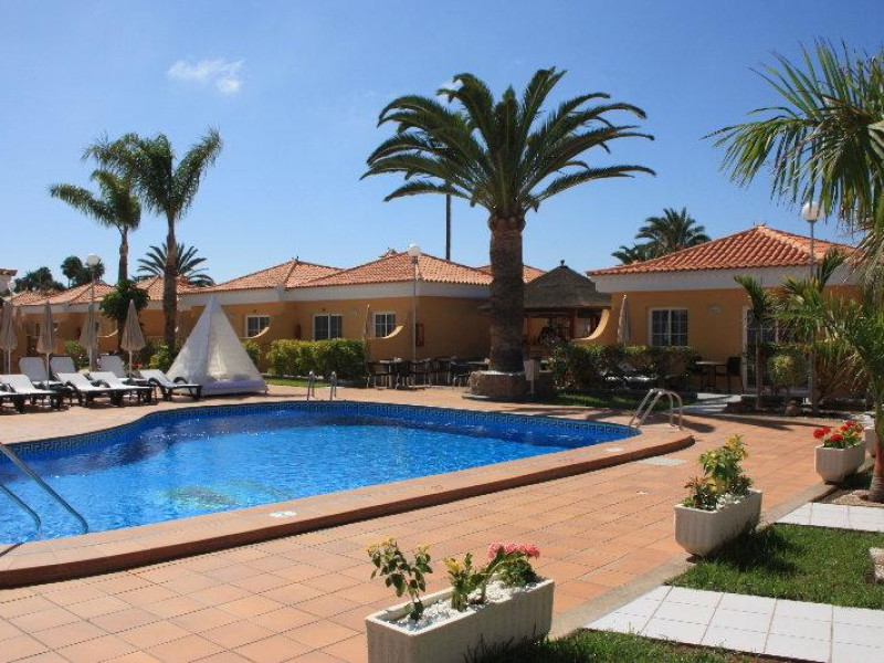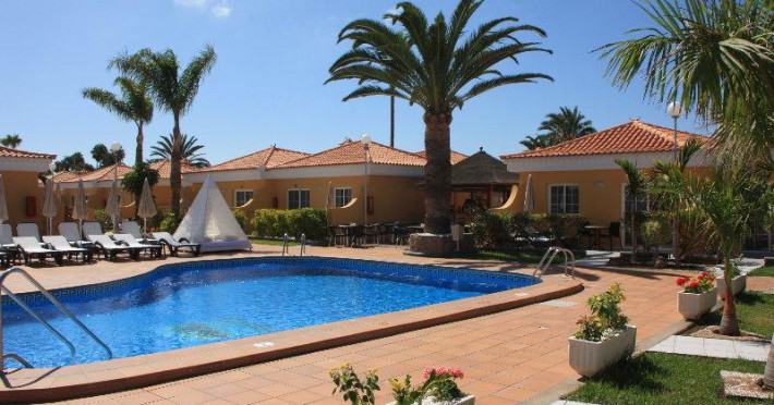 This bungalow complex enjoys a strategic setting in Maspalomas, lying just a short distance away from the famous Maspalomas Dunes. The complex enjoys close proximity to the main attractions that the area has to offer. The resort is located just 1 km away from the nearest golf course. This resort enjoys a convenient setting, just 30 km away from Gran Canaria Airport. This wonderful resort is sure to impress, comprising beautifully-designed poolside bungalows. The bungalows enjoy a charming design, and are equipped with modern conveniences, offering a relaxing home away from home. The resort's impressive range of facilities and services ensure that guests experience a truly unforgettable stay.Room Description: Each bungalow consists of one bedroom with a double bed, an en suite bathroom with bathtub and hairdryer, a living area and a kitchen with fridge, microwave and tea and coffee making facilities. Other amenities include satellite TV, radio and hifi systems, WIFI Internet access, an ironing set and individually regulated air conditioning. All rooms have private terraces leading onto the pool and hot tub area.