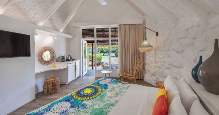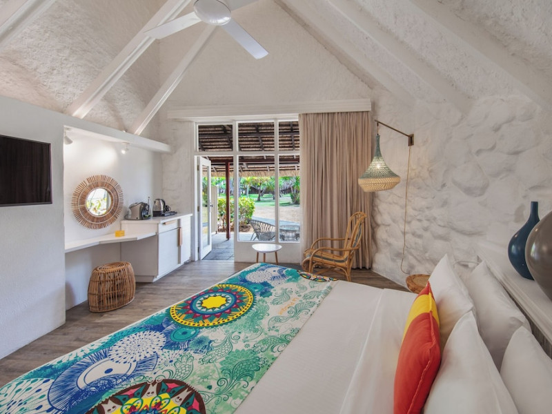Located in Flic en Flac, La Pirogue is a 4-star beach resort set within tropical gardens on a white sand beach. The resort features Mauritian bungalow-style accommodations with colorful interiors. Guests can enjoy a large outdoor swimming pool, a full-service spa offering massages and treatments, and a fitness center. Dining options include 5 restaurants, a coffee shop/cafe, and 2 bars/lounges, including a beach bar. Complimentary buffet breakfast is served daily.