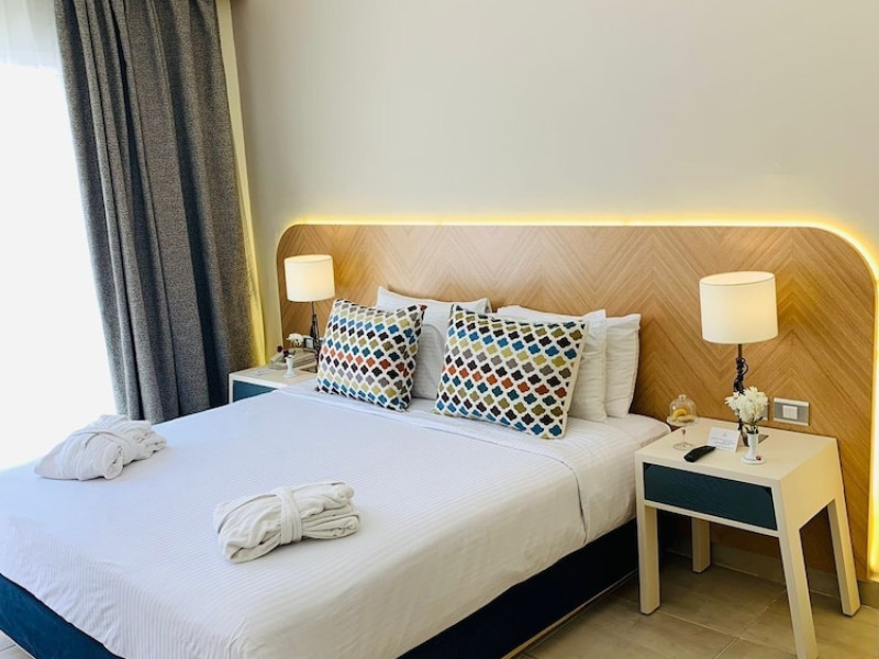 Overlooking Sharm Club Beach Resort in Sharm El Sheikh, this 4-star all-inclusive hotel offers panoramic views of the Red Sea and the Sinai Mountains. The hotel's architecture resembles a traditional Egyptian village. Guests can enjoy a private beach, outdoor pools, and a spa with a hot tub, Turkish bath, and massage facilities. Dining options include multiple restaurants and bars, with 24-hour room service available. A complimentary buffet breakfast is served daily. The hotel offers opportunities for snorkeling and diving. Additional amenities include complimentary wireless internet access, a business center, concierge services, dry cleaning/laundry services, and a playground. Air-conditioned rooms feature cable TV, a fridge, and a private bathroom. The hotel is a short drive from Naama Bay and central Sharm el-Sheikh. Free self-parking is available onsite. The Labranda Sharm Club is a hotel. Located in Sharm El Sheikh area.