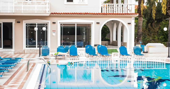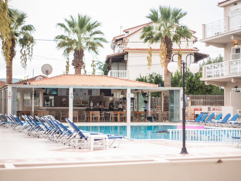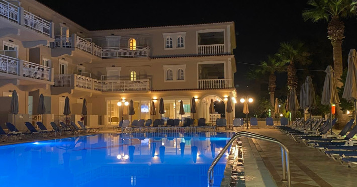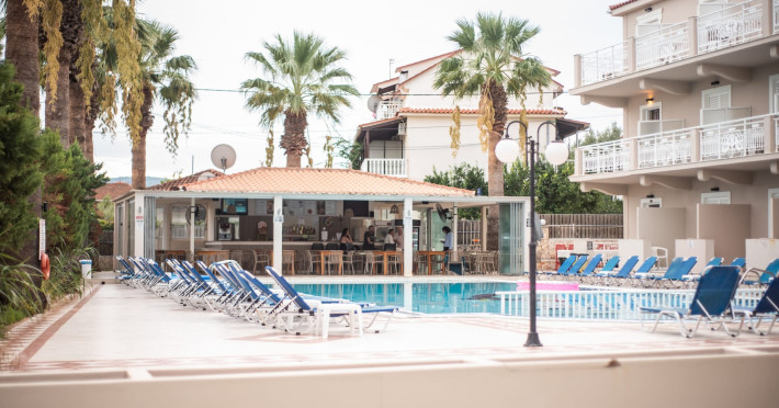 THE HOTELWelcome to Laganas Holidays Hotel – ZanteLaganas Holidays Hotel Zante is a charming 2* property in Laganas Beach – Zante Island. It has 75 rooms and 2 Family Rooms equipped with all modern comforts.Boasting a spacious, palm-lined swimming pool with sun loungers and a Snack Bar, you’ll have everything you need for relaxation. Our friendly personnel serves a buffet breakfast in the hotel's ground floor lounge.Our hotel offers an excellent location just 120 meters from the golden shore and glittering waters of Laganas Beach. The “Dionysios Solomos” Zante international airport is only 7 km away.When the sun goes down you’re just a short walk from the many nightclubs, bars and restaurants of Laganas Town center.Our lovable hotel’s Reception personnel is at your disposal to recommend the Zante island activities and to rent cars and motorbikes.We look forward to welcoming you!