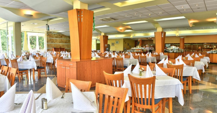 Mancare si bautura: Restaurantul Principal Laguna Garden - Restaurantul ofera un meniu variat de 7 zile - Vegan, care se pregateste la cerere si preparate vegetariene, Preparate sanatoase, Produse din productie proprie si Showcooking. Mic dejun: 07:30 - 10:00 Pranz: 12:30 - 14:30 h Gustari: 15:00 - 17:00 (dulciuri, fructe, gustari, inghetata) / In Snack bar Cina: 18:00 - 21:00 * Inghetata este disponibila in timpul meselor in restaurantul principal de la snack bar. ** Retineti ca unele dintre hoteluri ar putea schimba usor orele in functie de nationalitatile specifice cazate acolo, dar cu cel mult 30 de minute +/- . *** Cina cu gratar - de 6 ori pe saptamana **** Cina tematica - de 2 ori pe saptamana Bauturi All Inclusive: Sunt disponibile o gama larga de bauturi, cum ar fi cafea si ceai, bauturi racoritoare din post mix, o selectie de bauturi care sunt produse in Albena (suc, vin si tuica), o selectie de vinuri la robinet, un selectie de bauturi spirtoase locale si bere la halba. * Toate bauturile imbuteliate si o selectie de bauturi alcoolice importate si/sau premium sunt disponibile la un cost suplimentar. Baruri all inclusive: Lobby bar: 10:00 - 23:00 h Bar la piscina: 10:00 - 22:00