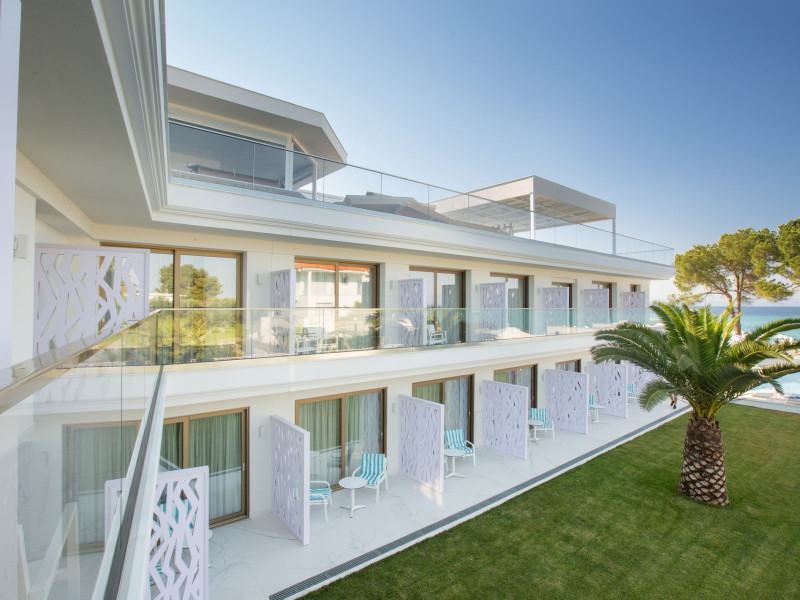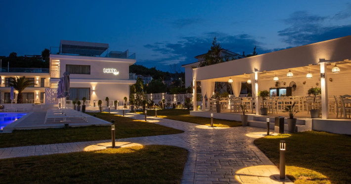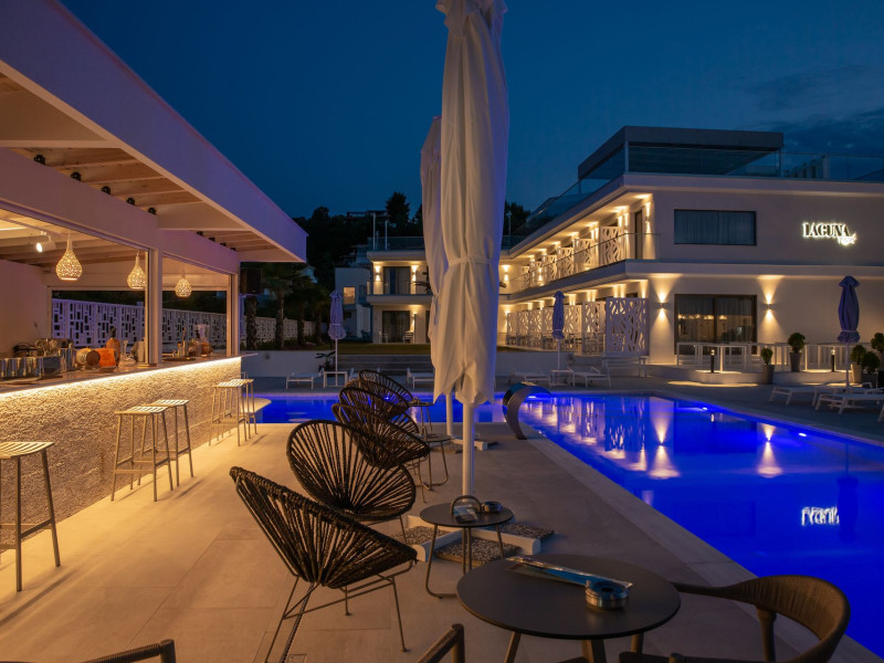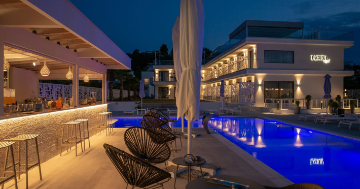 Laguna Resort is an elegant premium-class beach hotel, located right at the Aegean Sea, near Chanioti, a cosmopolitan village of the Kassandra peninsula in ??Chalkidiki, one of the most popular tourist destinations in Greece.In balance and with respect towards Nature, the hotel was built in the beginning of 2019, using only high-quality and environmentally friendly materials. It is the perfect choice for those who want to experience the symbiosis of nature and the comfort of modern design.The sophisticated style of interiors, the harmonious unity with its natural surroundings, the dedicated and attentive staff ready to fulfill the needs of the guests - these are the components of a great holiday in Laguna Resort!All 18 rooms of Laguna Resort are luxuriously decorated and equipped with everything necessary for a unique experience. The elegant lines of the furniture, the inspiring overseeing view of the crystal blue waters of Toroneos bay crowned with mount Athos in the distance, the relaxing colors of the room that blend with the natural sunlight - all contribute to the coziness you will feel, even from the first moments. There are 5 room types available: Superior Double Room with Side Sea View, Junior Suite with Sea View, unior Suite with Front Sea ViewSuite Deluxe with Side Sea View, Suite Executive with Side Sea View.Standard in every room:- Air conditioning- Flat LED TV set- Electronic Safe- Mini Bar- Bathroom with shower- Free WiFiCreate your own experience. Enjoy a cocktail served inside our pool. Take a stroll on the sandy beach. Go for a dive in the sea and come out right away to sit at our Taverna serving traditional greek cuisine. In addition to relaxing at the hotel, you can go on exciting excursions to near local sights, look at the remains of ancient Greek fortresses and the orthodox monasteries in the cliffs of the Monastery Republic of Mount Athos, the Holy Mountain.Services:- 100 cars parking lot- Sunbeds and umbrellas free for our guests- Outdoor pool with built-in bar- Children's playground- Massage- Transfer from and to airport- Car and yacht rentalWith Thessaloniki’s international airport only 90 kilometers away, this hotel is the ideal place for those who want to explore the peninsula and enjoy its spectacular views and beaches.Our guests are the reason we love what we do!