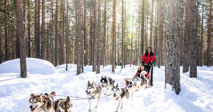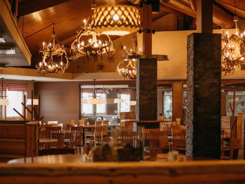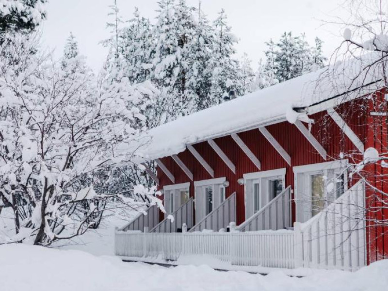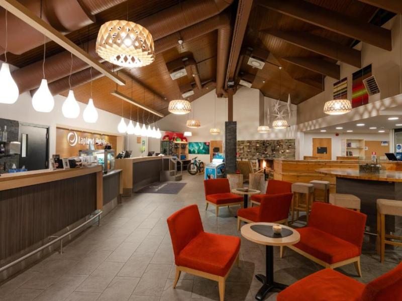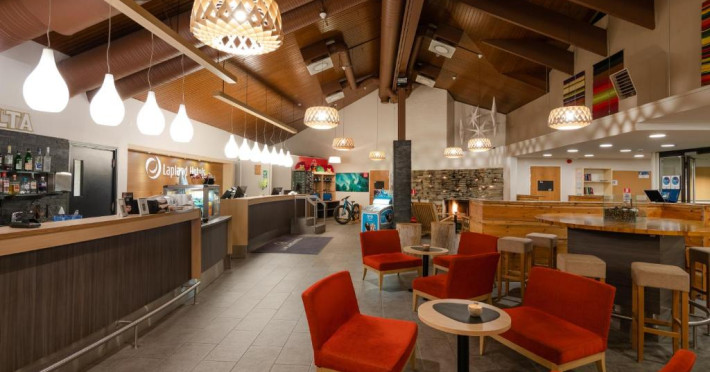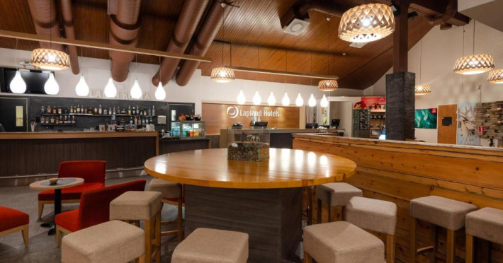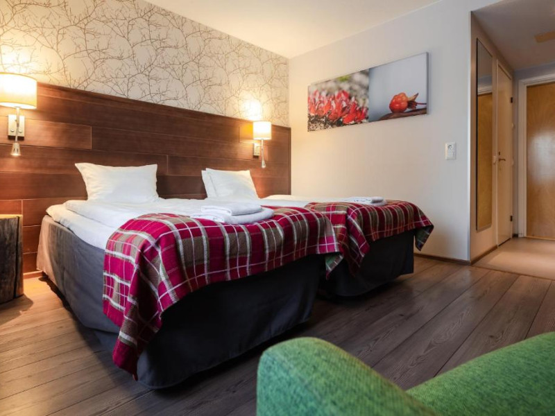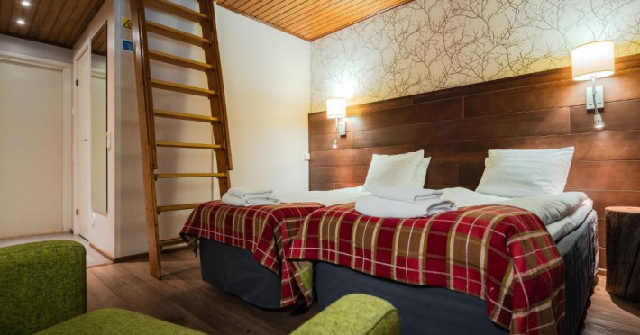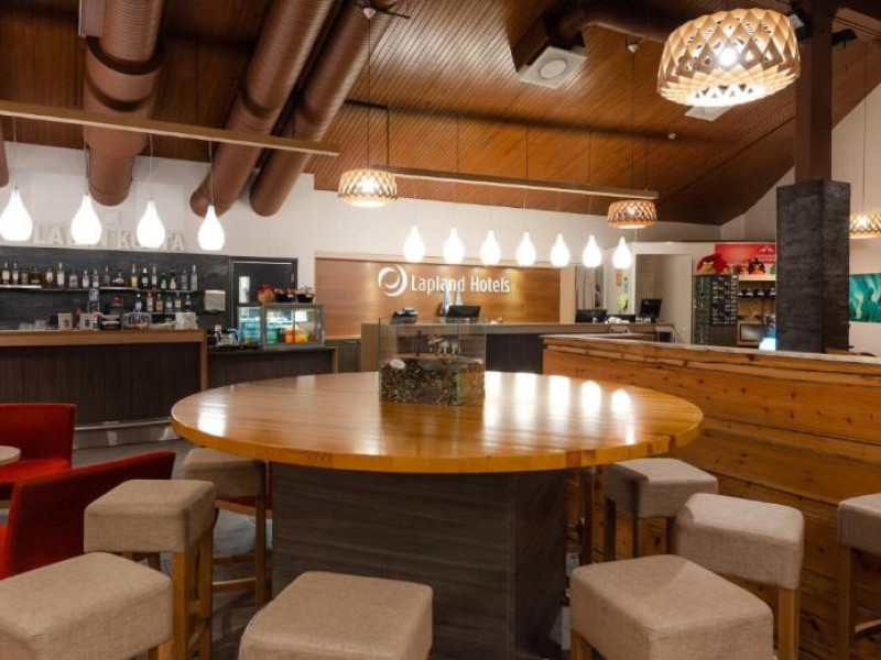 Camerele confortabile imbină stilul scandinav cu elementele tradiționale lapone, creand o atmosferă caldă și primitoare. Facilitățile hotelului includ saună finlandeză, restaurant cu specific local și lounge bar unde vă puteți relaxa după o zi pe partie.