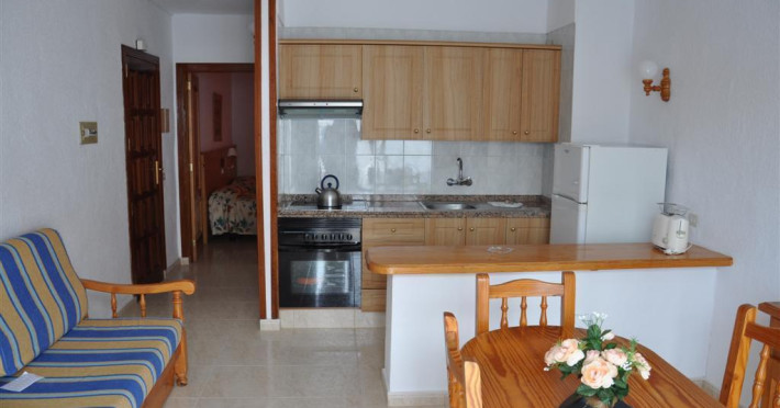 The apartment hotel is located in the heart of Playa de Las Americas, at just 500 meters from the beach of Las Palmeras, surrounded by many bars and restaurants. Guests will find restaurants, shops, nightlife and public transportation links bars in the immediate vicinity. The hotel is a short walk from the entertainment area known as 'Veronicas'. Just 10 minutes away from Siam Water Park. Good area to enjoy the beach, sun, day and night entertainment and excellent cuisine.Two towel services per week and one sheet service per week. Cleaning is done every day except Monday and Thursday.