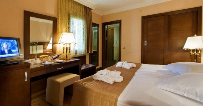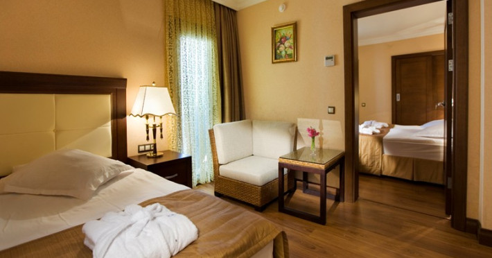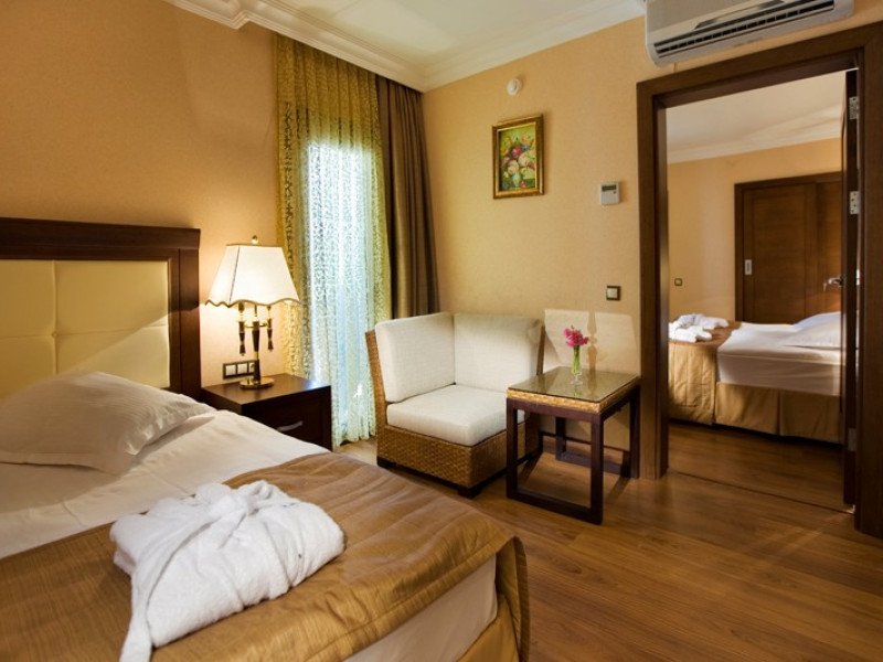 The hotel Latanya Park Resort is located in the vicinity of a private sandy beach. A supermarket is around 2 km away. There is a shuttle between the hotel and the airport (for a fee). On the beach are beach towels for a fee as well as sun loungers anThe hotel Latanya Park Resort is located in the vicinity of a private sandy beach. A supermarket is around 2 km away. There is a shuttle between the hotel and the airport (for a fee). On the beach are beach towels for a fee as well as sun loungers and cushions available. The seasonally air-conditioned, GPS-verified hotel has a 24h reception, a lobby bar, Wi-Fi, internet access, a lift, a supermarket, a boutique, a hairdresser, a first aid kit, parking spaces (limited) as well as a TV lounge with satellite TV. In the outdoor area of the property you will find a garden as well as a pool that is open seasonally, where you can rent pool towels for a fee. For children there is also a childrens pool with a non-swimming area. Furthermore, you can relax outdoors on a roof terrace. You can store your valuables in the safe, and your luggage in the hotels storage room. In addition, the hotel Latanya Park Resort is video-monitored 24h a day. For your entertainment, the hotel offers a disco. For the young hotel guests there is a playground. For very young guests, kids chairs can also be provided. Ironing equipment can be rented at the hotel for a fee. For your comfort the hotel page will ensure you are looked after. If necessary, you can contact the medical centre at any time (for a fee). The energy supply is 220 Volts. If you want to explore the holiday region, you can use the car rental service close to the hotel (extra fee). At the reception, tickets are offered for excursions in the area. For guests on their honeymoon, the hotel has special offers such as a basket of fruit in the room. In your hotel, a lot of focus is placed on sustainability. This includes the hotels own recycling bins, the provision of soap, shampoo and lotion dispensers and environmentally-friendly cleaning. That is why the hotel Latanya Park Resort was also awarded a sustainability certificate. The hotel requires that all guests pay a deposit upon arrival. Euro/Master Card and Visa are accepted as means of payment. Catering As catering services the hotel offers all-inclusive. Breakfast is offered from the buffet. Enjoy your lunch from the buffet. Dinner is also served as a buffet or à la carte. All Inclusive Light includes local alcoholic beverages. As part of the all-inclusive service, local alcoholic beverages (24h) are available around the clock and at no extra charge. For the meals, there are a restaurant with terrace (calorie-reduced dishes) and 2 bars, a 24h snackbar as well as the pool bar. Appropriate clothing is required for lunch and dinner. Sports amp; Leisure For an fee, you can take advantage of various water sports, such as bananaboats. With beach volleyball and darts various other sports offer a lot of variety on holiday. A sauna awaits you in the hotels own spa. The hotel also offers massages (extra fee). Infants can be looked after in the hotels own baby club. For older children the care takes place in the childrens club. There is a babysitting service in the hotel (extra fee) . The mini disco also offers age-appropriate entertainment for young hotel guests. In terms of adult entertainment, shows are organized in the evening. Additional information The 3-storey hotel has a total of 204 rooms. Larger groups of young people under the age of 25 are not allowed in this property, as this is a hotel especially for families. This hotel is gay-friendly. The hotel staff speak English, German, Russian and Turkish.