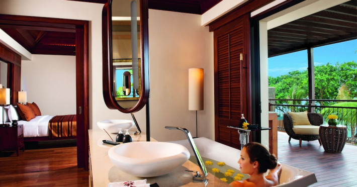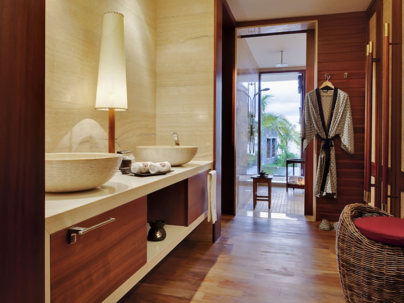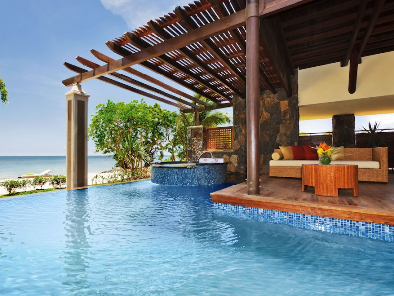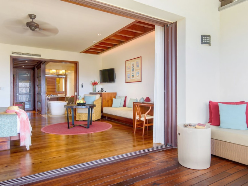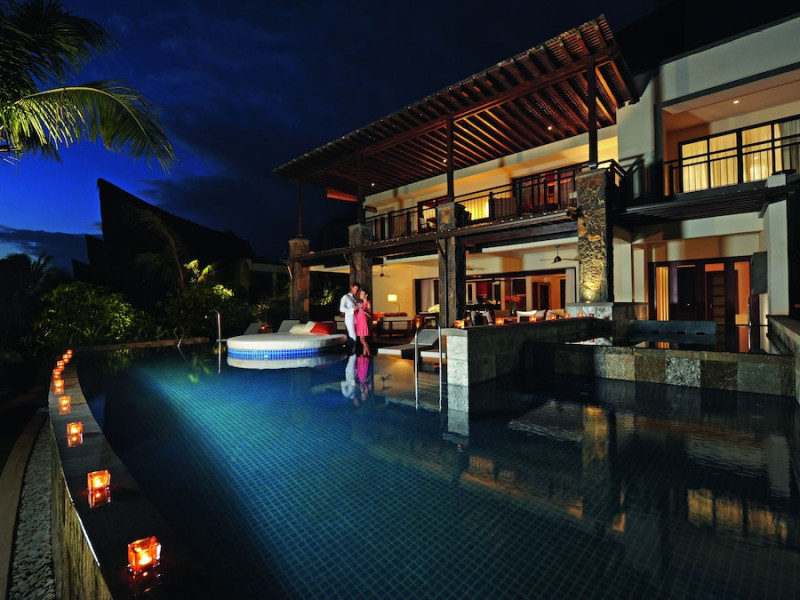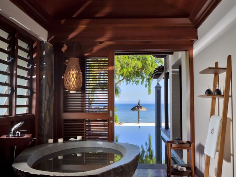 Located on the northwest coast of Mauritius in Turtle Bay, Le Jadis Beach Resort & Wellness - Managed by Banyan Tree offers a beachfront setting with sunset views. This resort features spacious suites, some with private heated infinity pools. Guests can enjoy two outdoor pools, a spa with extensive water therapy facilities, a 24-hour fitness center, and complimentary water sports such as kayaking and snorkeling. Dining options include four restaurants serving international cuisine, Asian specialties, and gourmet fusion, with options for various dietary preferences. The resort also offers a 24-hour business center, meeting rooms, concierge services, and complimentary wireless internet access. A roundtrip airport shuttle is available for a surcharge, and free self-parking is provided. The air-conditioned rooms feature iPod docking stations, minibars, LCD televisions with satellite programming, and private bathrooms with separate bathtubs and showers. The Le Jadis Beach Resort & Wellness Mauritius is a Beach Resort, Honeymoon, Resort, Tourist hotel. Located in Turtle Bay area. The nightlife/restaurants are easily accessible by taxi or bus from the hotel.