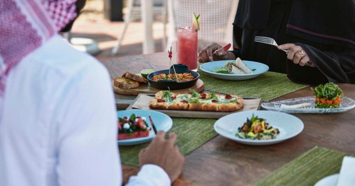 Restaurantul principal al hotelului Le Meridien Al Aqah servește micul dejun, pranzul și cina, inclusiv bufeturi tematice. Există, de asemenea, restaurante specializate in bucătăria indiană și thailandeză, precum și un restaurant pe plajă pentru a lua masa in aer liber.