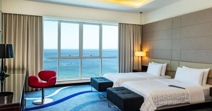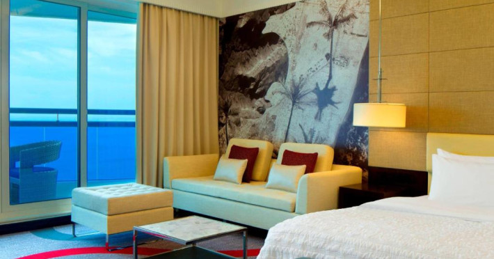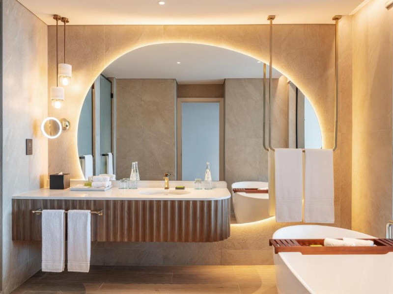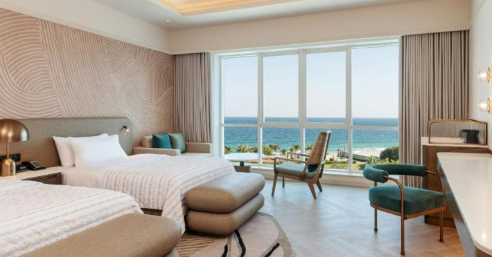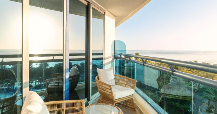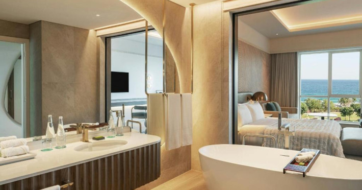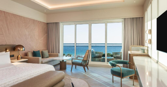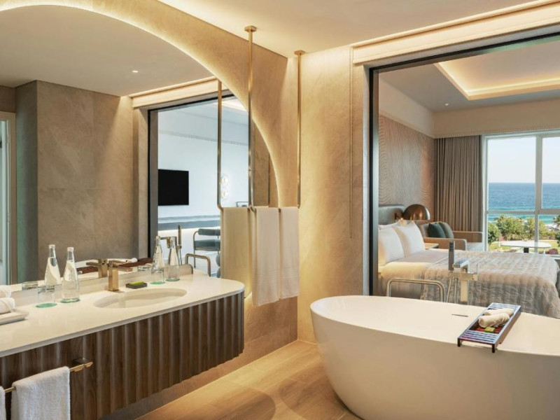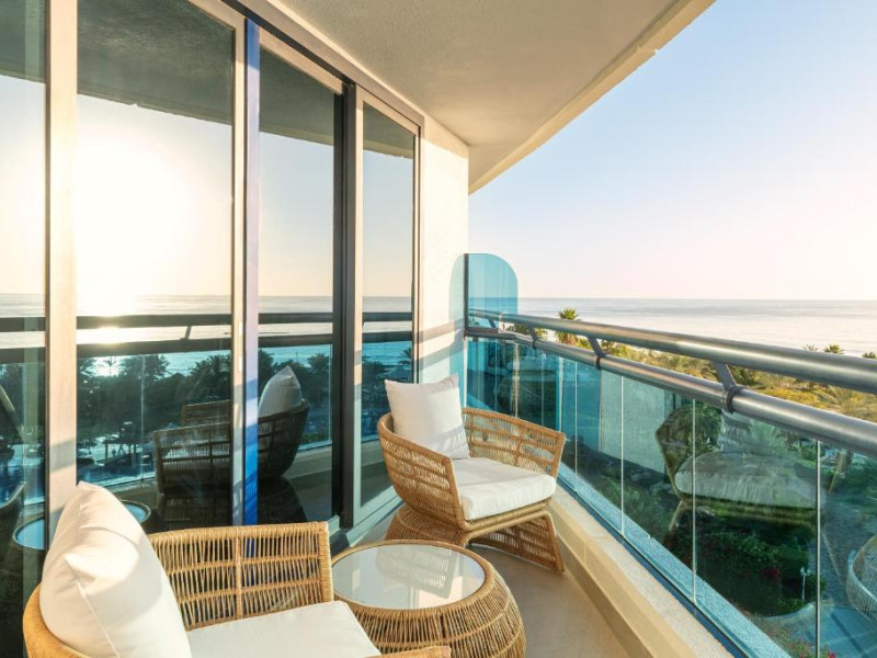 Camerele hotelului sunt foarte spațioase și toate oferă vedere la plaja cu nisip. Aceste camere dispun, de asemenea, de o baie luxoasă supradimensionată, cu duș separat walk-in și cadă. Multe dintre camere au balcoane private.