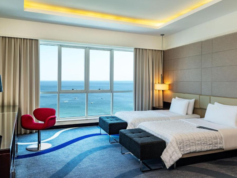 Amplasat intr-o locație excelentă, cu vedere panoramică la Oceanul Indian pe o parte și la Munții Hajar pe cealaltă, Le Meridien Al Aqah este un hotel de 5 stele care oferă facilități luxoase. Un serviciu de transfer de la/la aeroport este disponibil la cerere.
