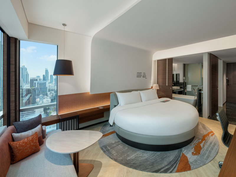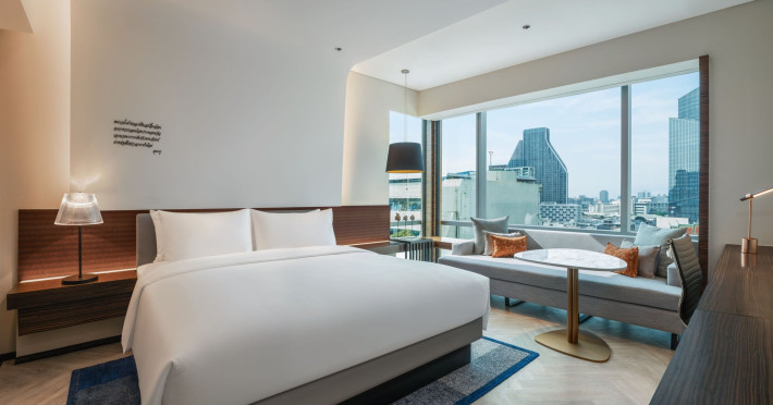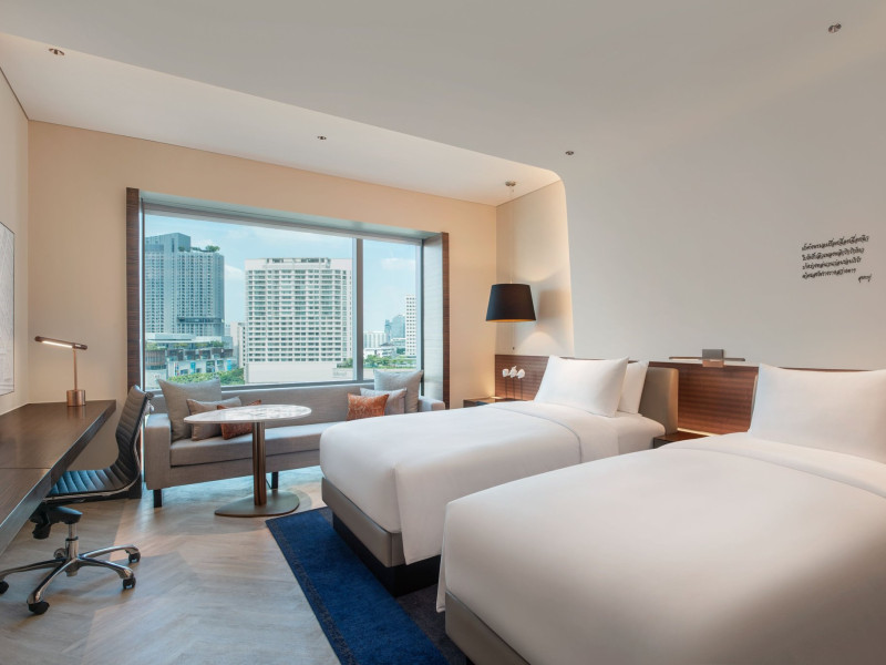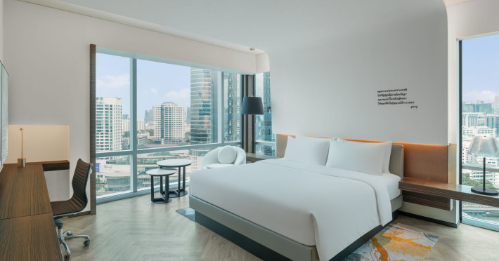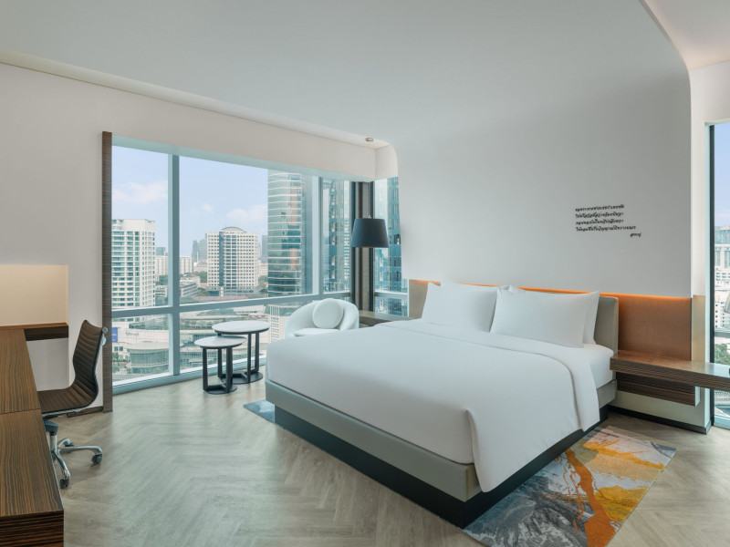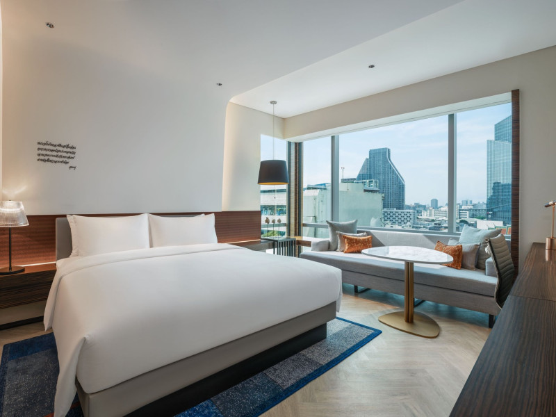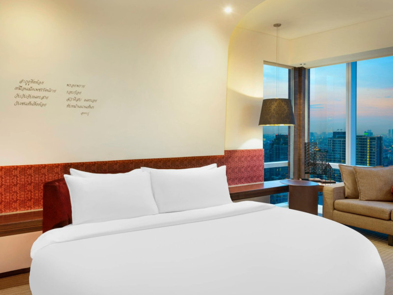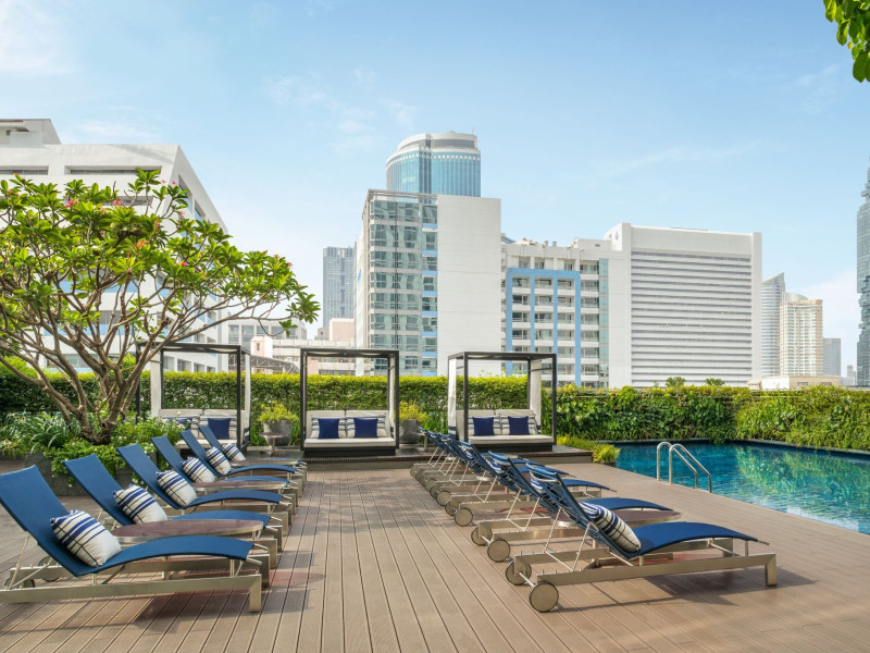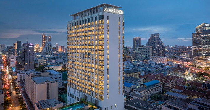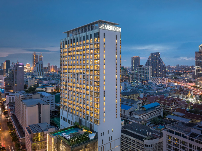 Stimulate your senses at Le Méridien Bangkok, an award-winning, art-inspired, luxury hotel in Bangkok, Thailand's loved capital. Set on Surawong Road in the Silom business hub, our high-end downtown Bangkok hotel is steps from the vibrant Patpong Night Market, celebrated nightlife, and Samyan Mitrtown. Access the best of Bangkok via the nearby Sala Daeng BTS and Sam Yan MRT stations. Ground your getaway in luxury, sipping cocktails beside our hotel's outdoor pool overlooking the iconic Mahanakhon building. Get pampered at the world-class spa and sustain yourself with curated local Asian and European cuisine. Visiting Bangkok for a destination wedding or corporate gathering? Our Silom, Bangkok hotel's versatile venues include a ballroom with a nine-metre ceiling alongside state-of-the-art meeting rooms. After each enriching day in Silom, retire to your plush sanctuary and watch the sunset over Bangkok's gilded temples and jagged skyscrapers. Savor the good life in this storied city at Le Méridien Bangkok.