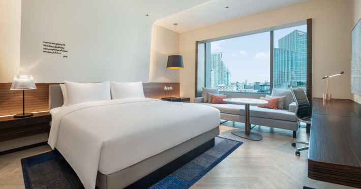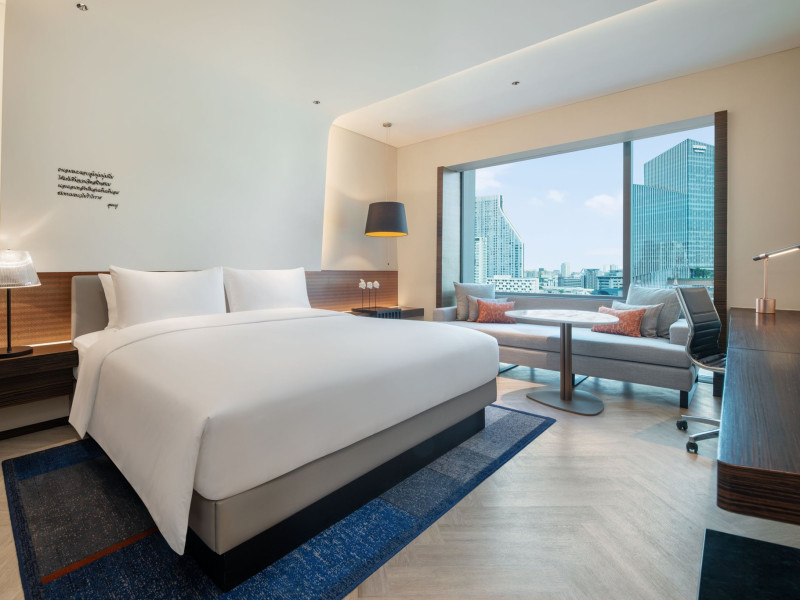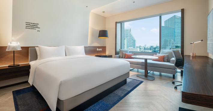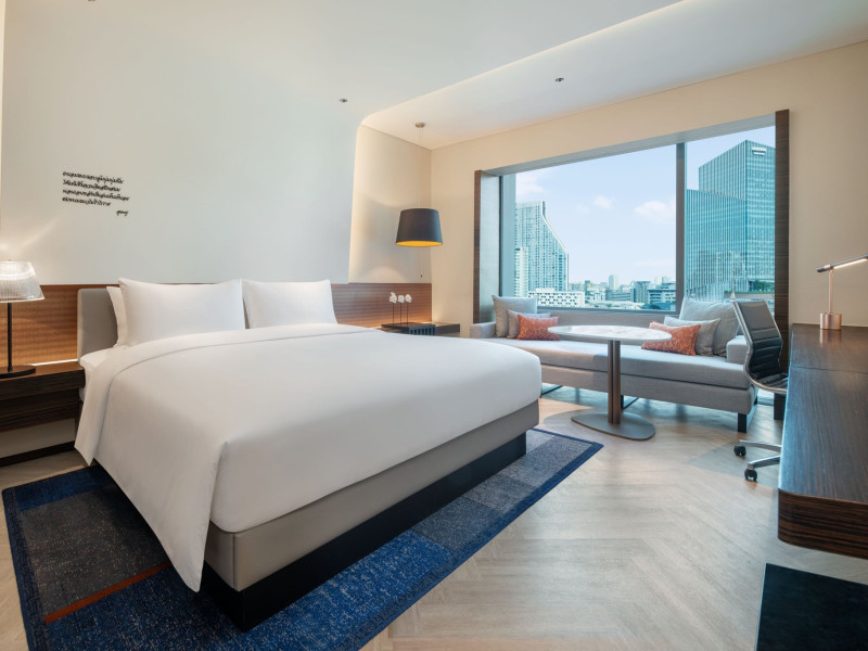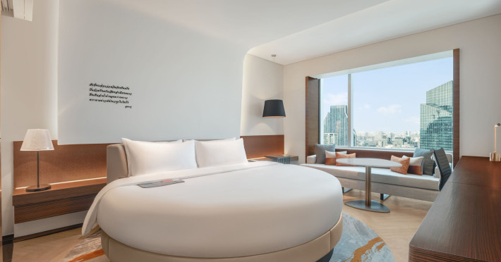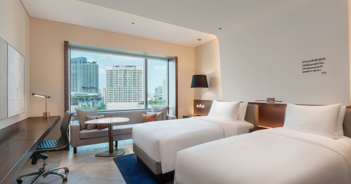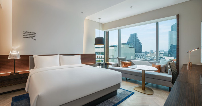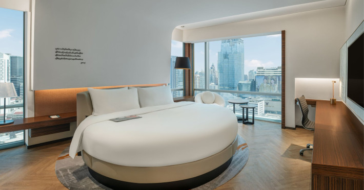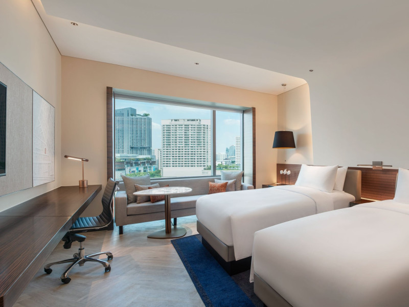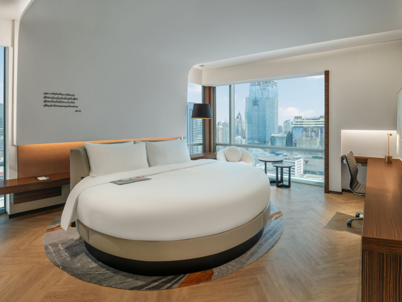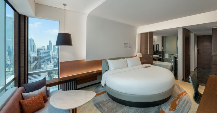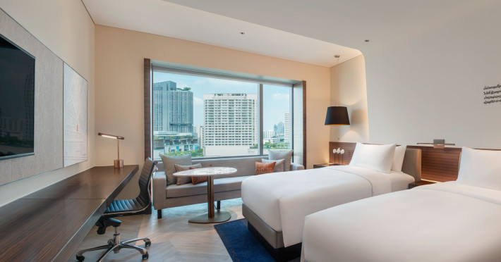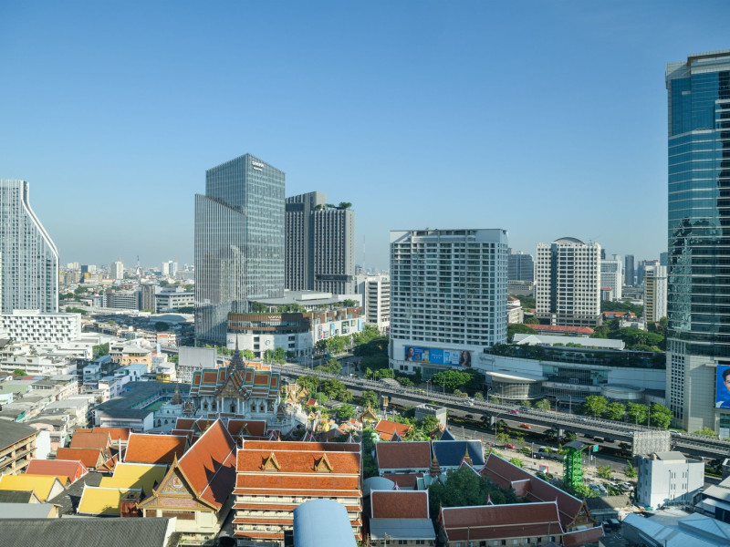 Stimulate your senses at Le Méridien Bangkok, an award-winning, art-inspired, luxury hotel in Bangkok, Thailand's loved capital. Set on Surawong Road in the Silom business hub, our high-end downtown Bangkok hotel is steps from the vibrant Patpong Night Market, celebrated nightlife, and Samyan Mitrtown. Access the best of Bangkok via the nearby Sala Daeng BTS and Sam Yan MRT stations. Ground your getaway in luxury, sipping cocktails beside our hotel's outdoor pool overlooking the iconic Mahanakhon building. Get pampered at the world-class spa and sustain yourself with curated local Asian and European cuisine. Visiting Bangkok for a destination wedding or corporate gathering? Our Silom, Bangkok hotel's versatile venues include a ballroom with a nine-metre ceiling alongside state-of-the-art meeting rooms. After each enriching day in Silom, retire to your plush sanctuary and watch the sunset over Bangkok's gilded temples and jagged skyscrapers. Savor the good life in this storied city at Le Méridien Bangkok.