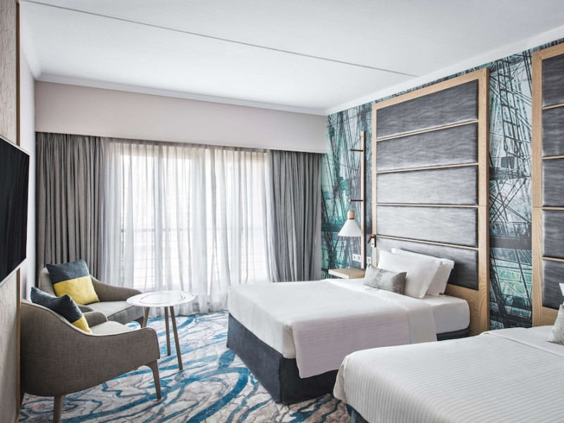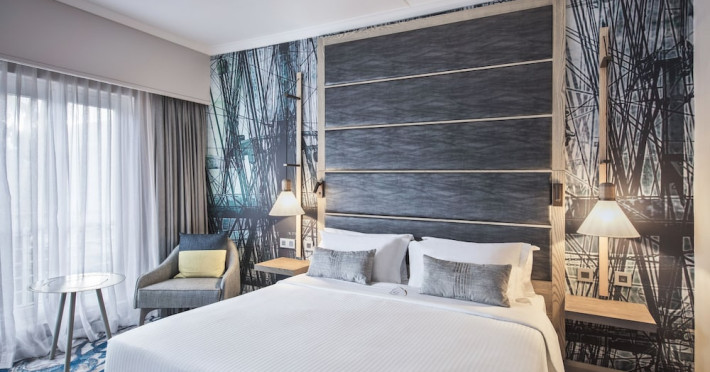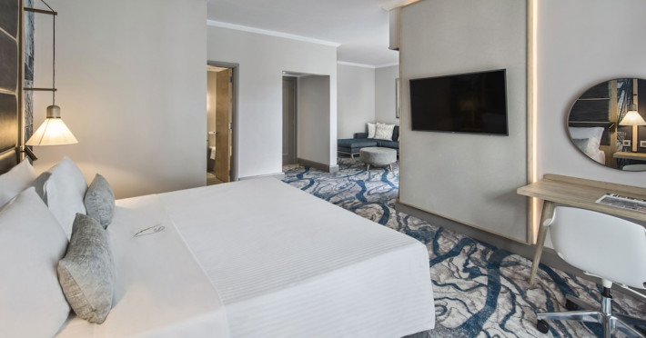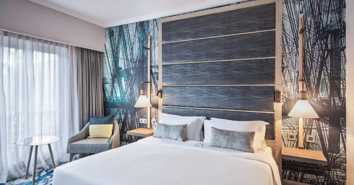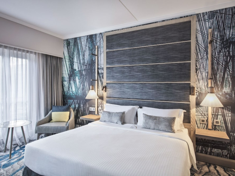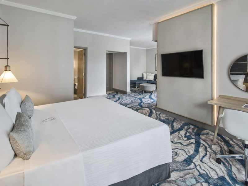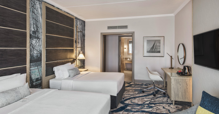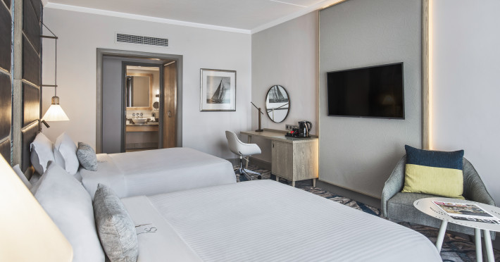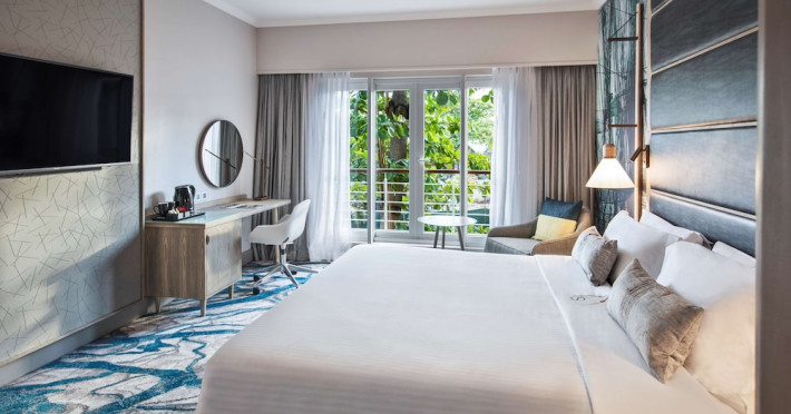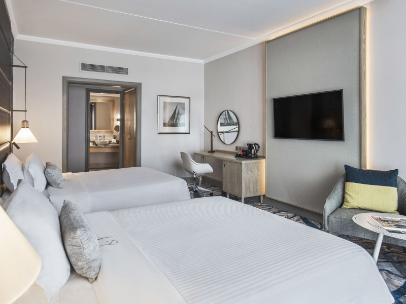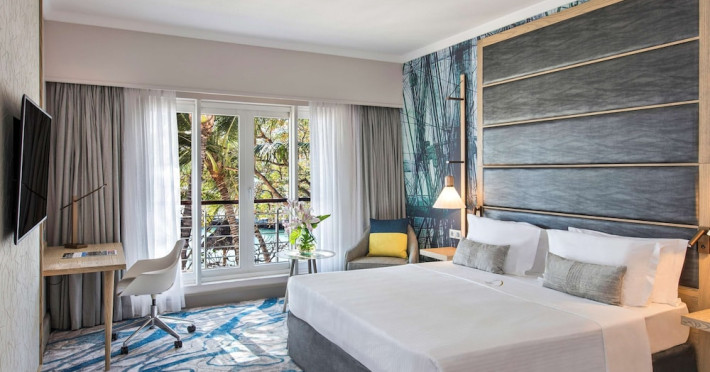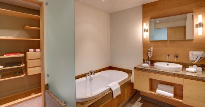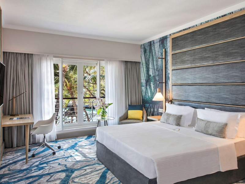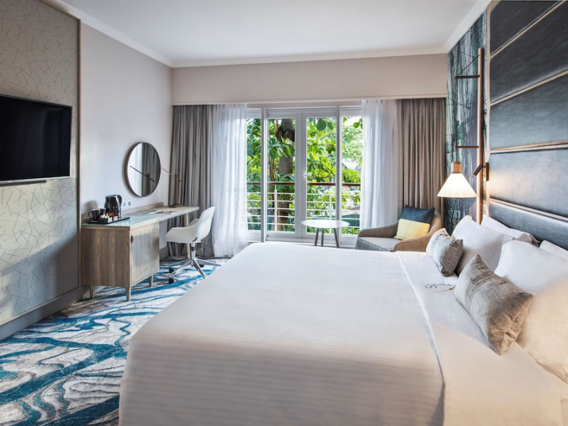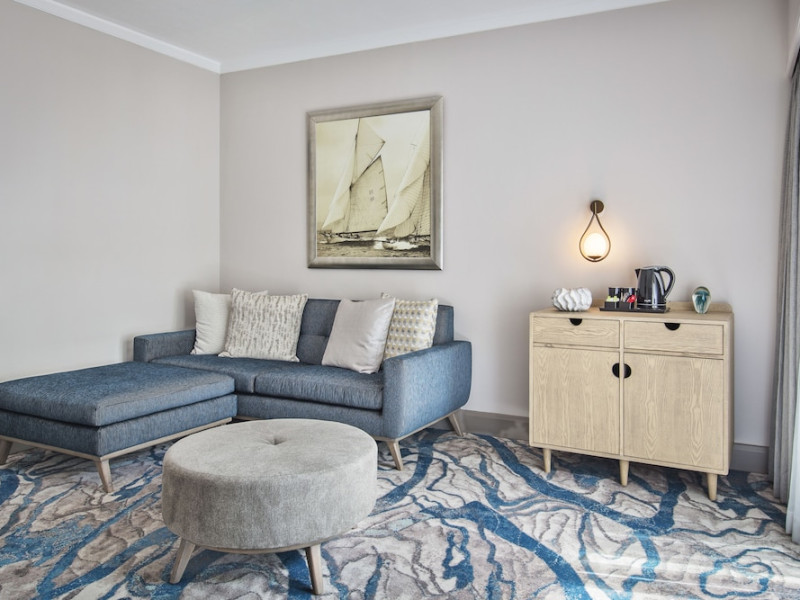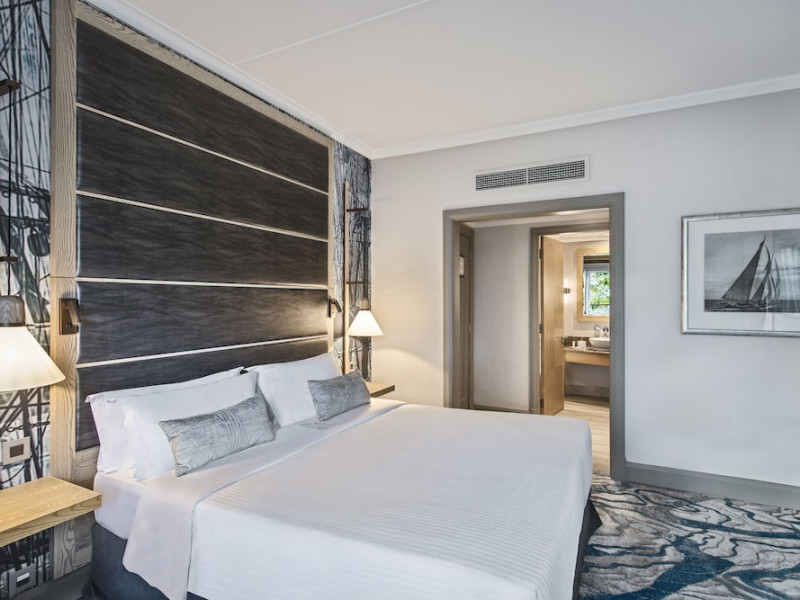 Le Suffren Hotel & Marina is a waterfront hotel in Port Louis, Mauritius, 44 km from Sir Seewoosagur Ramgoolam International Airport (MRU), with airport shuttle service available for a surcharge. The hotel offers spacious, air-conditioned rooms with light décor, overlooking either the Indian Ocean or the gardens. Amenities include a fully equipped gym, a private beach area, an outdoor pool, two restaurants (Pomme de Mât, specializing in local and international cuisine, and Sushi Quay, offering sushi and oysters), a spa with massages and other treatments, a hair salon, complimentary Wi-Fi, concierge services, and 24-hour room service. There are also multiple bars/lounges, a coffee shop/cafe, and a business center. Guest rooms feature minibars, Smart TVs, private bathrooms with separate bathtubs and showers, safes, and desks. The hotel also offers serviced duplex apartments for longer stays. Nearby attractions include the Caudan Waterfront, Port Louis Market, and the Odysseo Oceanarium. A complimentary water taxi shuttle is available daily. Full breakfast is available daily for a fee. The Le Suffren Hotel and Marina is a hotel.
