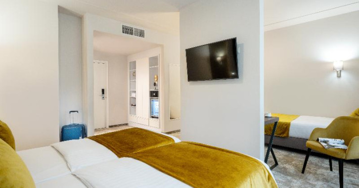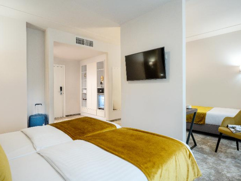 42 rooms are located on 5 storeys and can be reached by lift. The reception desk is open round the clock. Amenities include a baggage storage service, a safe and a cash machine. Wireless internet access is provided in public areas. The tour desk offers assistance with booking excursions. Additional facilities include a TV room. Guests arriving by car can park their vehicles in the garage (for a fee) or in the car park (for a fee). Other services include medical assistance, a transfer service, a laundry service and a hotel shuttle bus. Active guests can make use of the bicycle hire service to explore the surrounding area.