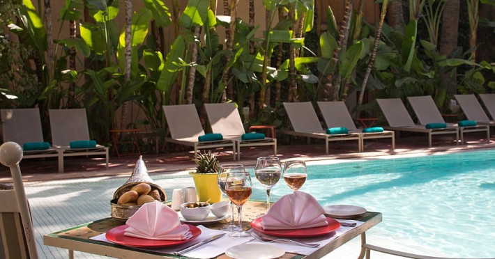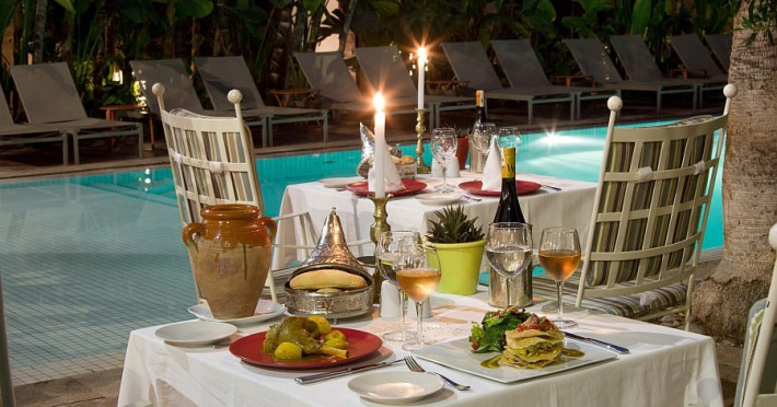 Restaurantul principal serveste micul dejun tip bufet cu retete marocane si continentale, care pot fi savurate si pe terasa privata.