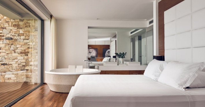 True to its name, the Lesante blu surrounds you with spectacular views of the blue sea. Located in the picturesque village of Tragaki Zakynthos, the award wining all suite hotel and member of The Leading Hotels of the World is simply one-of-a-kind experience offering exclusivity, peace of mind and five star comfort. Its ‘all-about-you’ mentality can be experienced via the private infinity pools, the adults-only policy, the state-of-the-art suites and the discreet staff. The fine selection of restaurants offering you creative Greek & Mediterranean dishes by the sea, the secluded private beach, the luxurious Spa, the 24/7 impeccable room service and the private helipad as well as a jetted platform used for private excursions with our own luxurious yachts around Zakynthos and nearby islands, add up to a unique stay experience.
