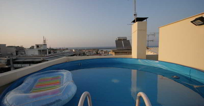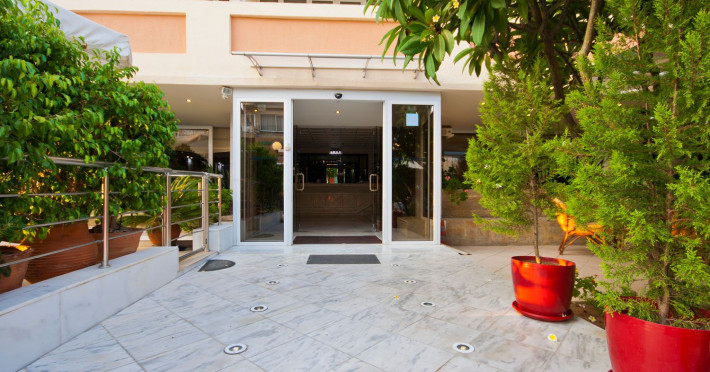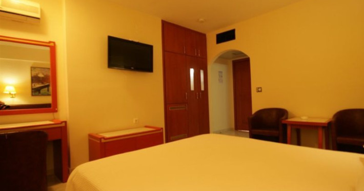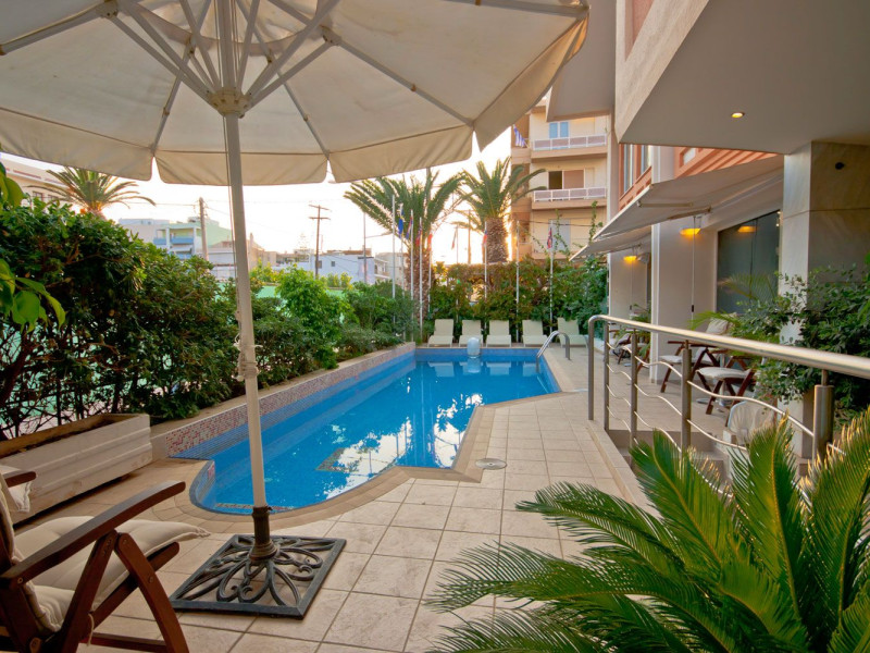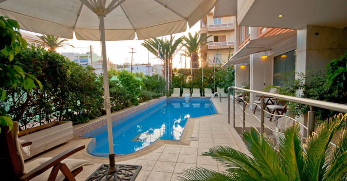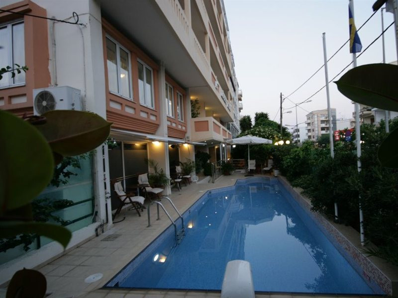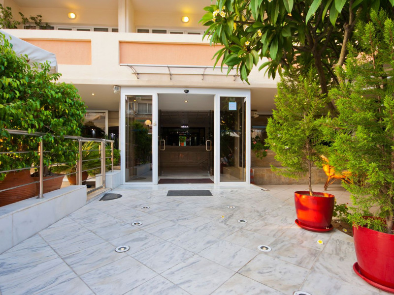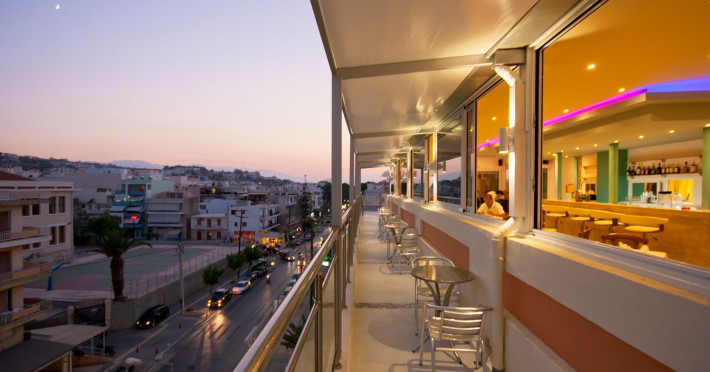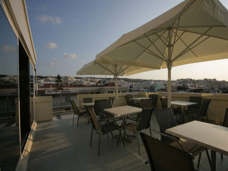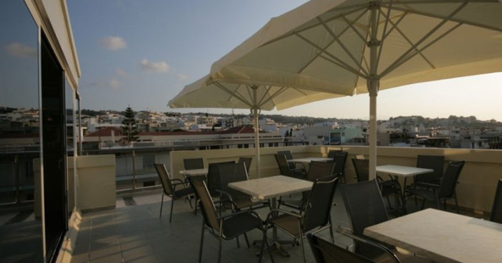 Elevators, wifi , lobby bar on the reception area, outdoor pool- sun loungers and umbrellas for free by the pool, restaurant, terrace with a wonderful view where you can have your breakfast & dinner, car parking ( extra charge), open pool with sunbeds, safe boxes ( extra charge), gym, table tennis ( extra charge) ,baggage room ( extra charge), laundry, conference room, which is available for approximately 15-20 persons. Sandy beach - sun beds and umbrellas at extra chargeThe 34 rooms, which are equipped with air conditioning, refrigerator, double glazed balcony doors, LCD TV with satellite and subscribed channels, tea / coffee making facilities, heating, telephone, free WI-fi, bathroom with bath or shower, hair dryer, and balcony or terrace. Extra bed- sofa.Please note that the linen change is done twice a week and housekeeping is daily.Address: Moatsou and Prevelaki Str., 74100 Rethymno, Crete, Greece