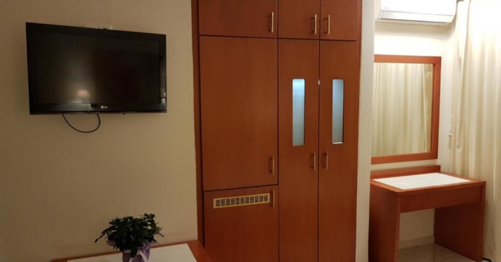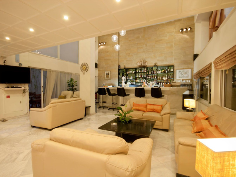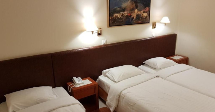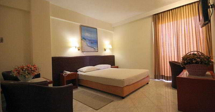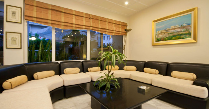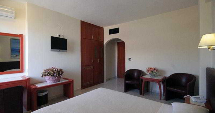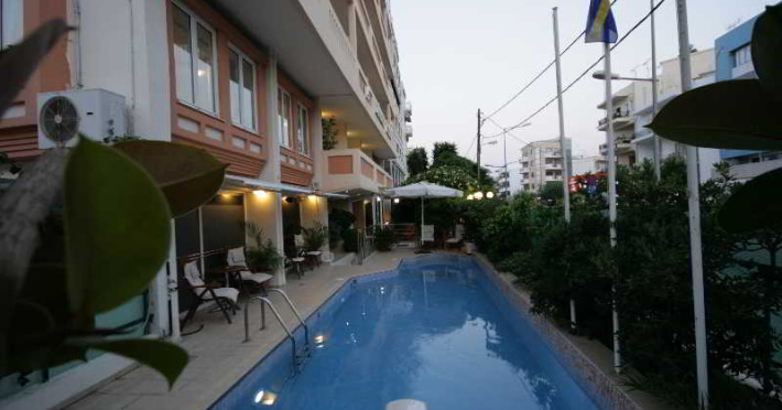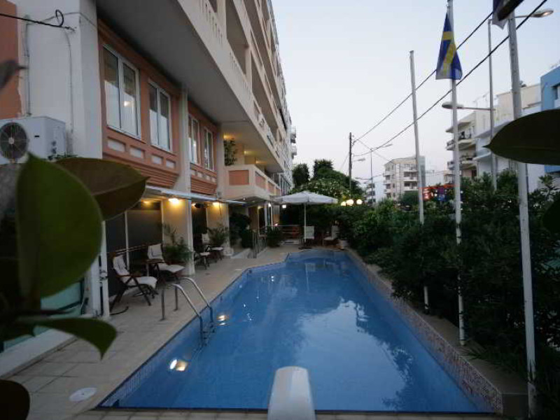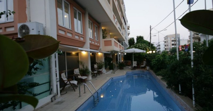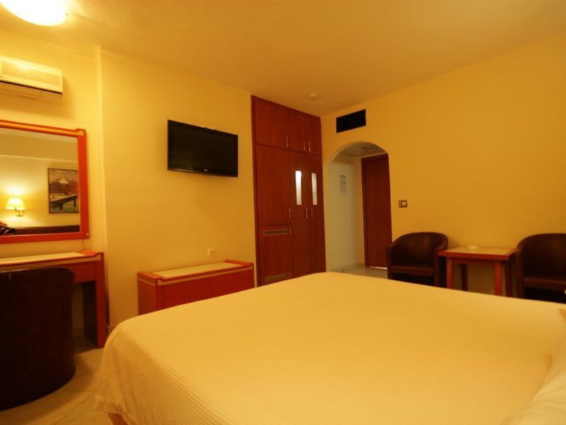 Elevators, wifi , lobby bar on the reception area, outdoor pool- sun loungers and umbrellas for free by the pool, restaurant, terrace with a wonderful view where you can have your breakfast & dinner, car parking ( extra charge), open pool with sunbeds, safe boxes ( extra charge), gym, table tennis ( extra charge) ,baggage room ( extra charge), laundry, conference room, which is available for approximately 15-20 persons. Sandy beach - sun beds and umbrellas at extra chargeThe 34 rooms, which are equipped with air conditioning, refrigerator, double glazed balcony doors, LCD TV with satellite and subscribed channels, tea / coffee making facilities, heating, telephone, free WI-fi, bathroom with bath or shower, hair dryer, and balcony or terrace. Extra bed- sofa.Please note that the linen change is done twice a week and housekeeping is daily.Address: Moatsou and Prevelaki Str., 74100 Rethymno, Crete, Greece